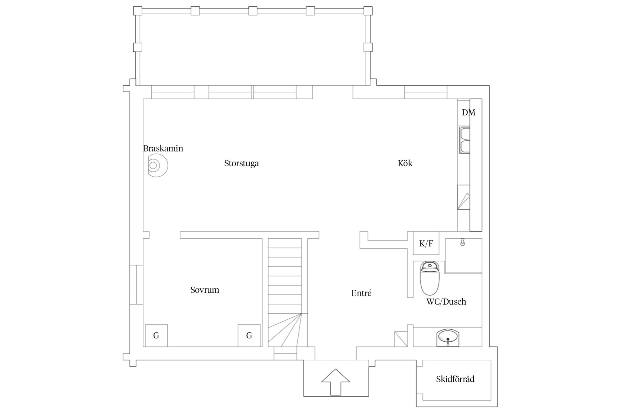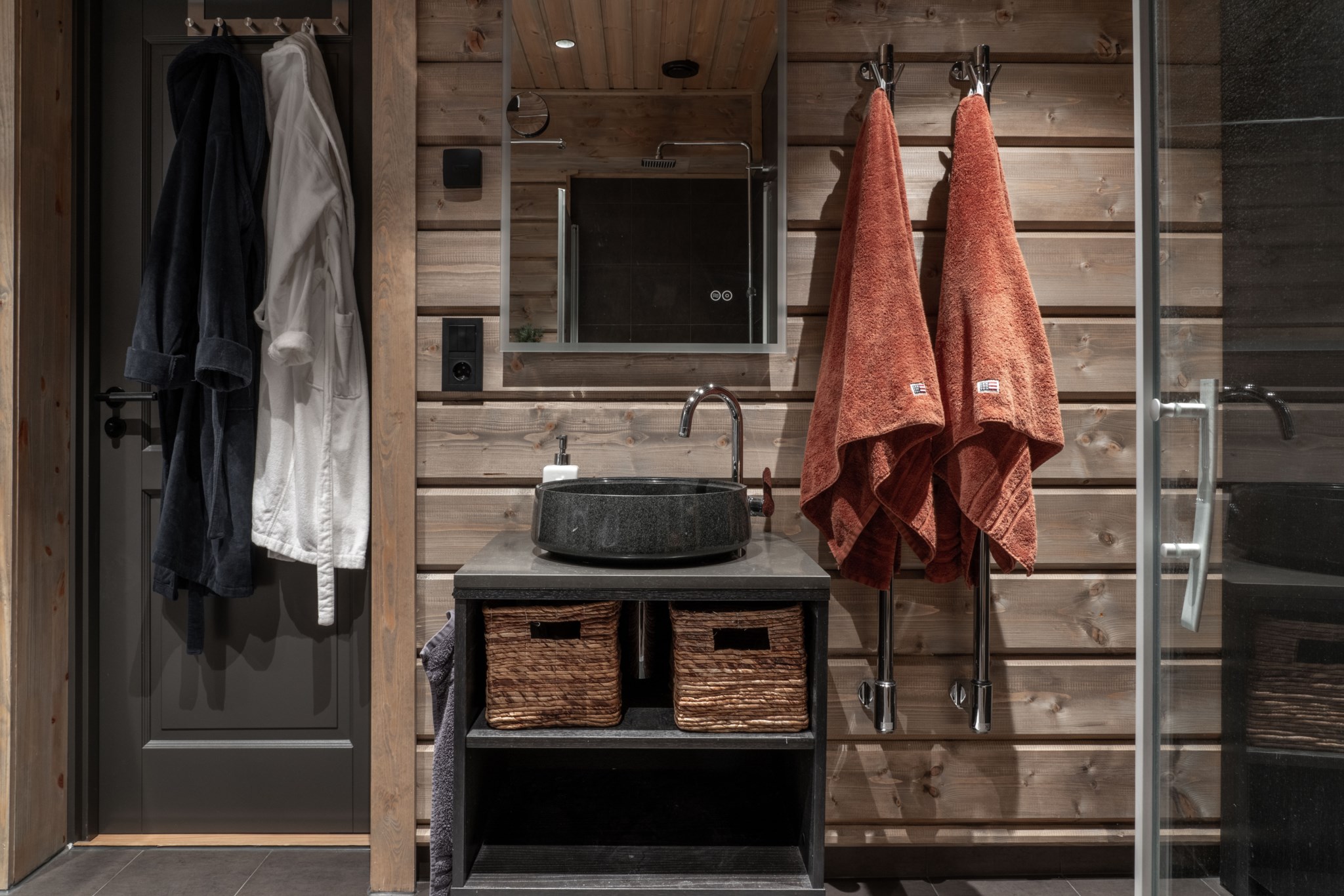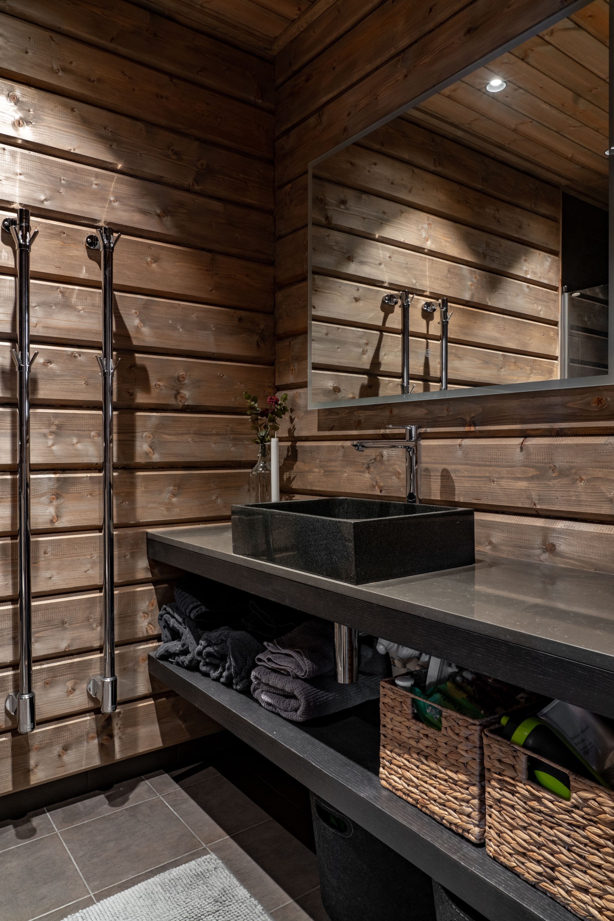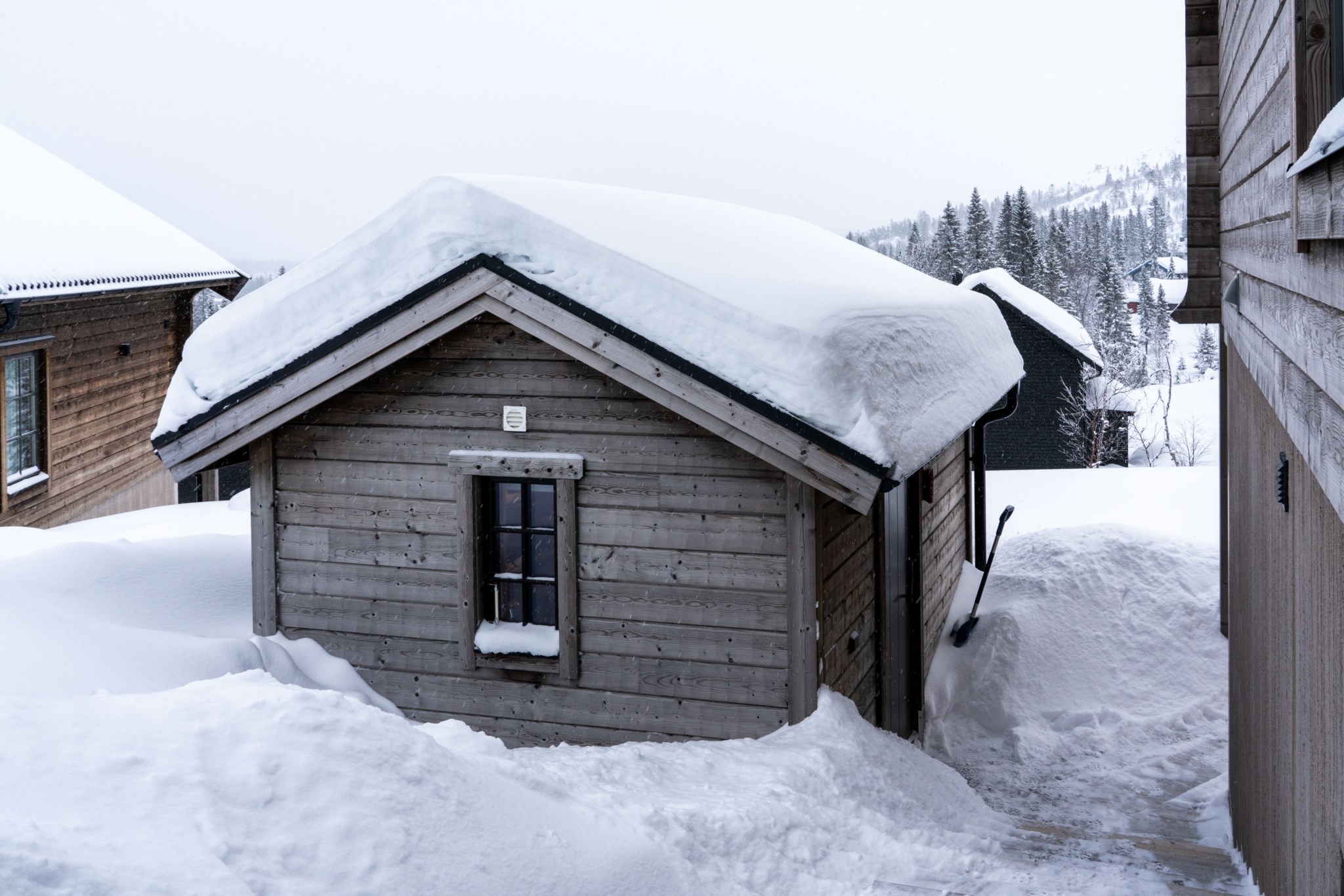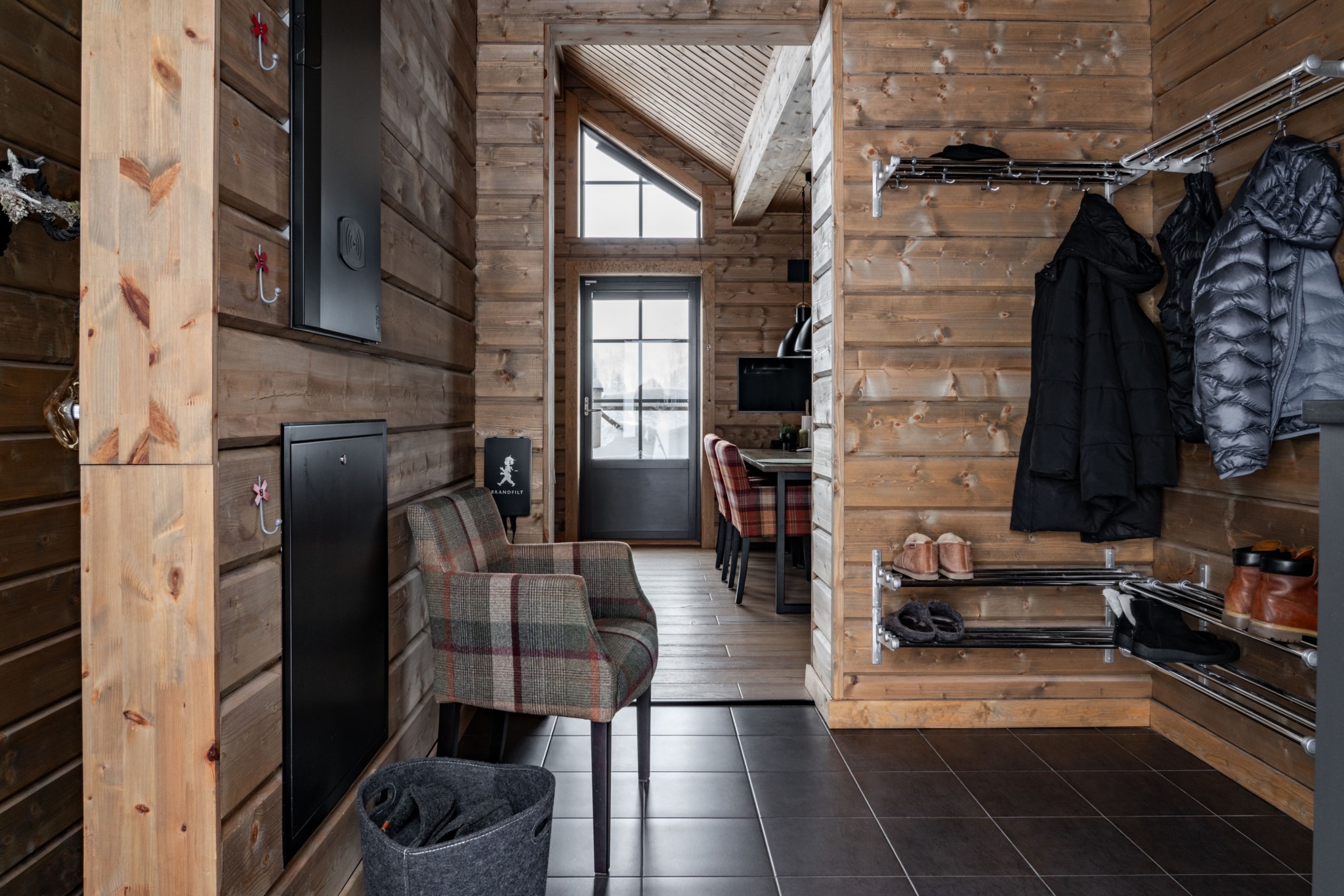 I anslutning till entrén finns ett utvändigt skidförråd. Vid sidan av bostaden har säljarna uppfört ett externt skiroom som de i dagsläget använder till ombytesrum, förvaring av skidutrustning och för att preppa skidorna inför en dag på fjället.