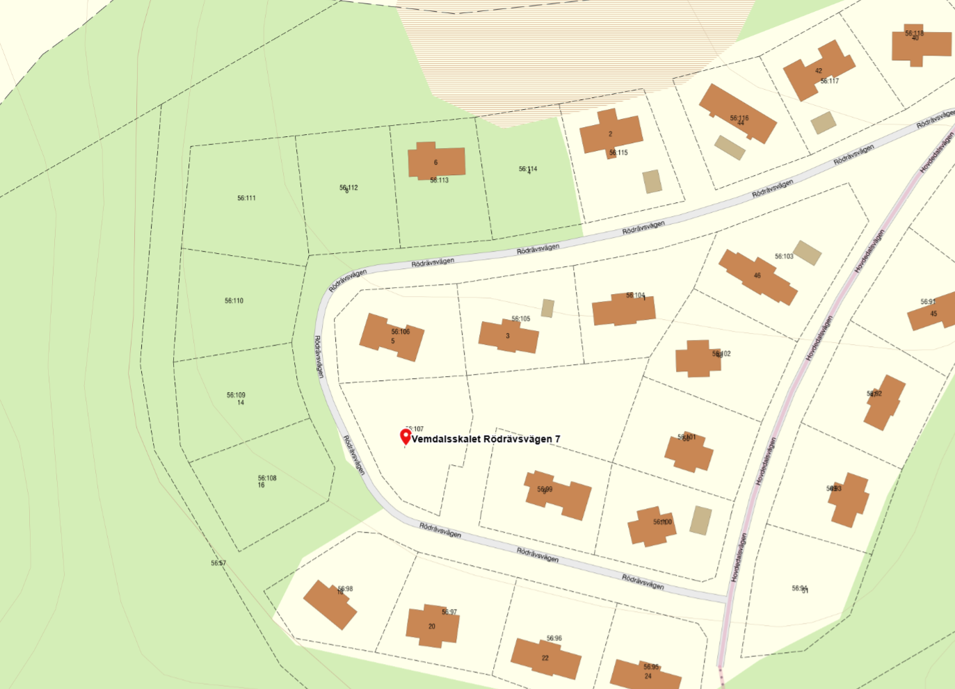 Det finns ett framtaget husförslag för tomten. När du bygger hus i övre Hovdedalen väljer du att bygga med någon av husleverantörerna Överbygg, Residens Bygg, Forsgrens Timmerhus eller Östanbäck Timmerhus som levererar husen till dessa tomter. Du som kund väljer vem av leverantörerna du vill bygga med och vad du vill bygga.