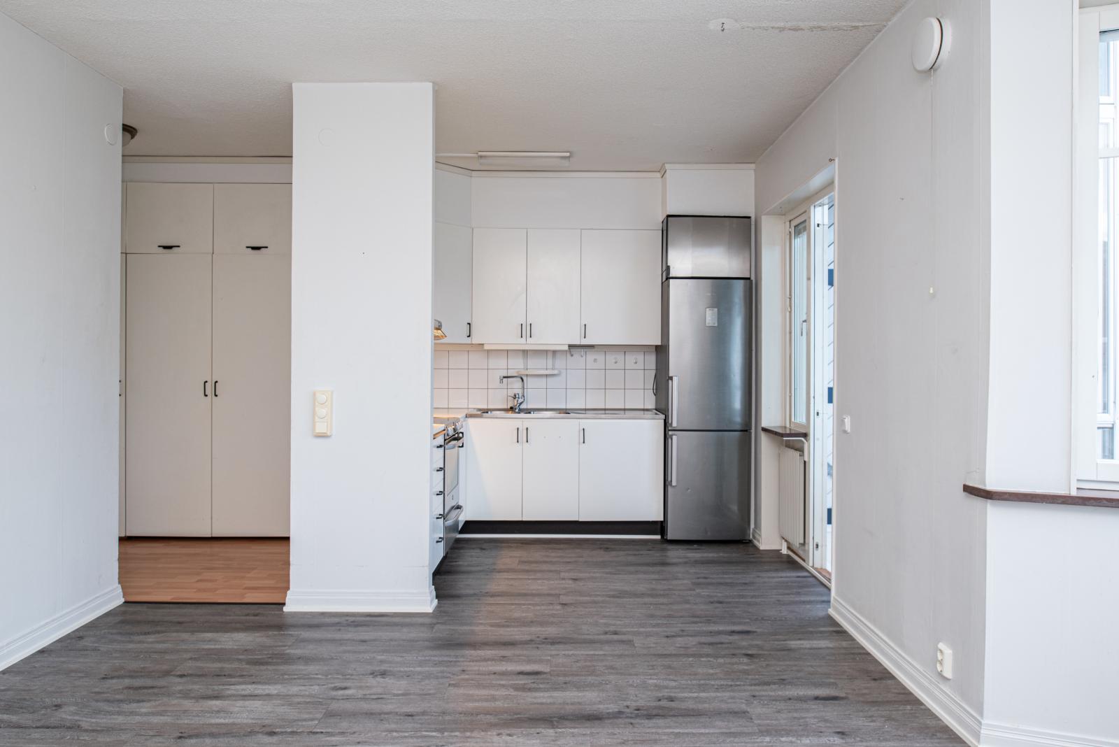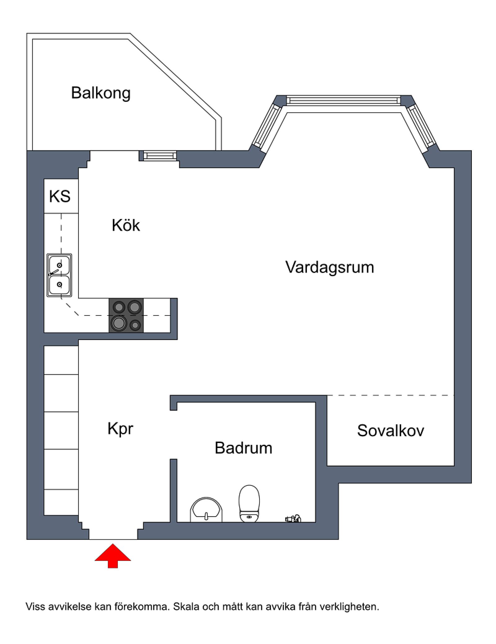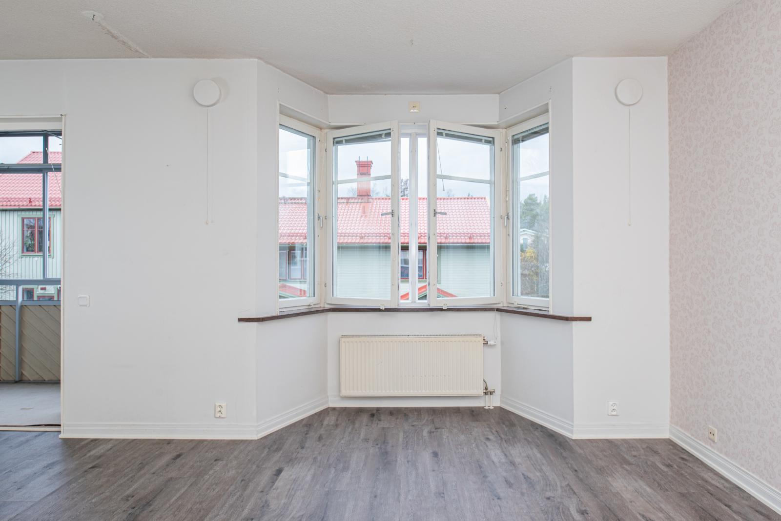 I denna välplanerade lägenhet har vardagsrummet med burspråk en öppen planlösning mot köket med trevlig social yta där det finns plats för både soffa och matbord och säng i sovalkoven. Ett fullutrustat kök med gott om förvaringsmöjligheter med fint ljusinflöde från den inglasade balkongen som lämpar sig både för egen avkoppling och sällskap.