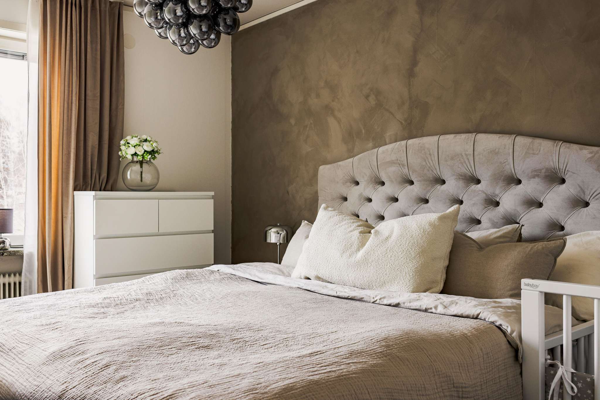 Vidare in ligger det smakfulla sovrummet med plats för dubbelsäng och god förvaring i inbyggda garderober.