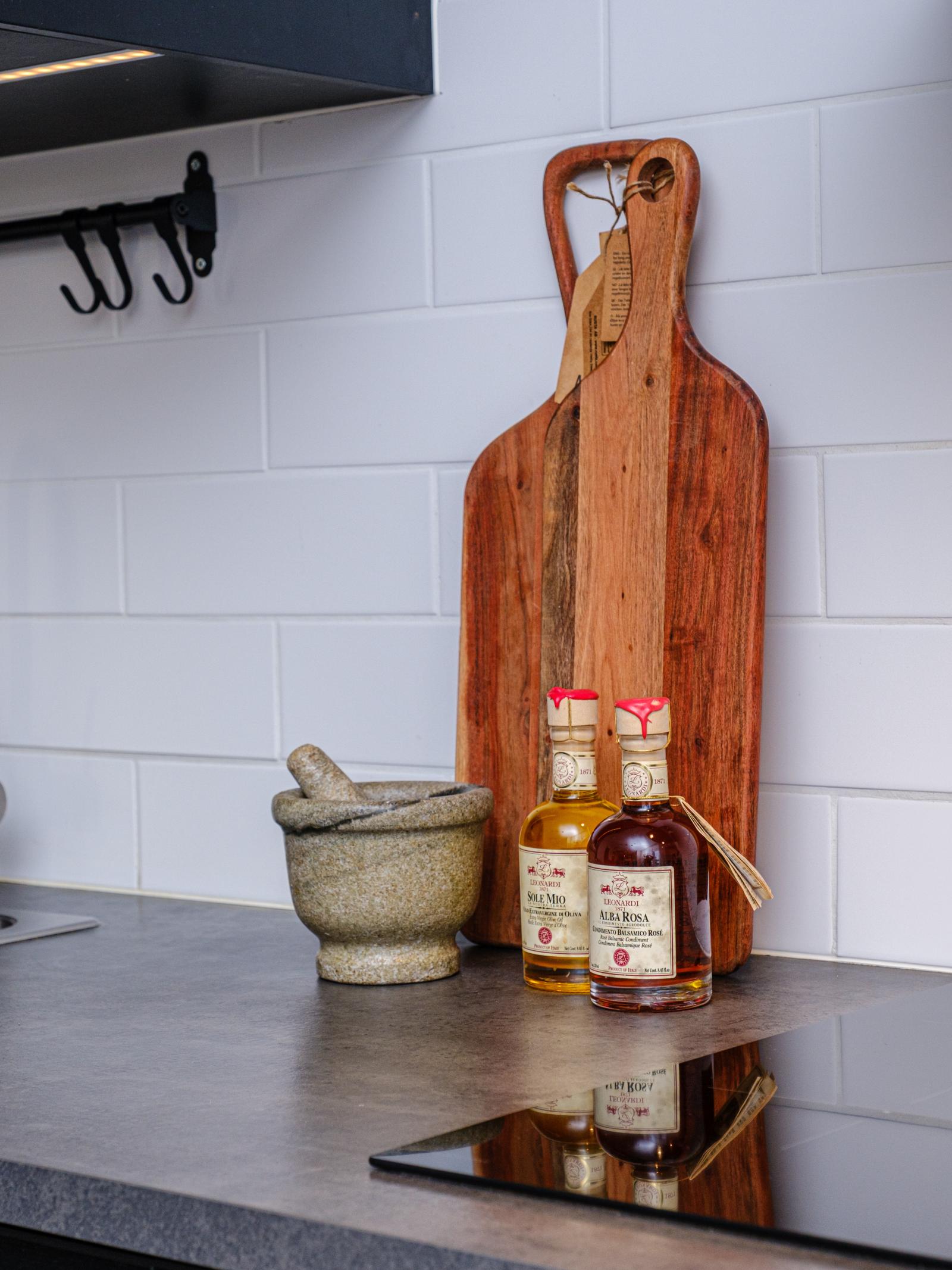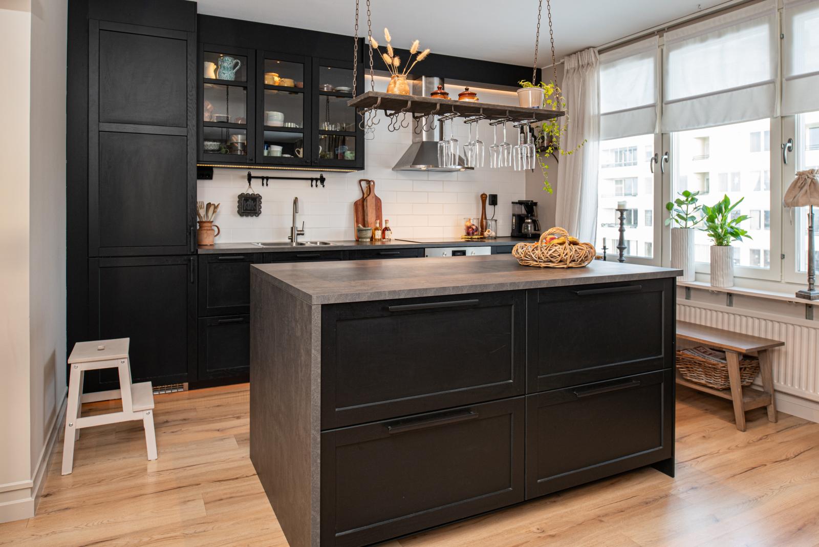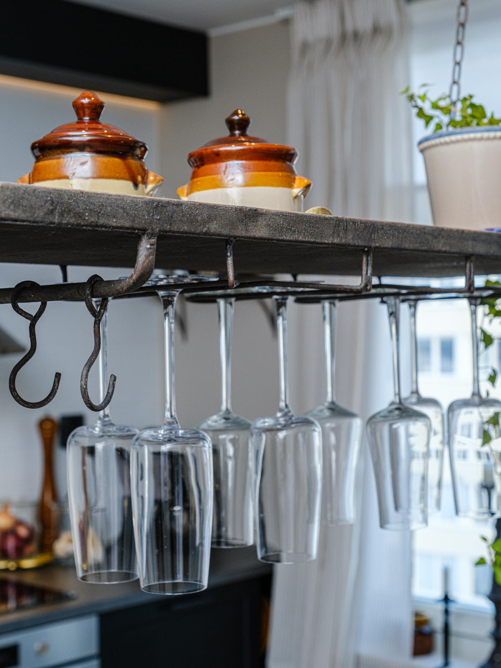 Det rymliga köket erbjuder utmärkta arbetsytor och gott om förvaring, perfekt för dig som uppskattar både matlagning och sociala sammanhang. Här har inget lämnats åt slumpen – kyl/frys, diskmaskin, ugn och spishäll, stilrena ytskikt och en öppen känsla gör köket till en naturlig samlingspunkt och dessutom en hel vägg med platsbyggd bokhylla med vitrinskåp och bänk - rätt och riktigt.