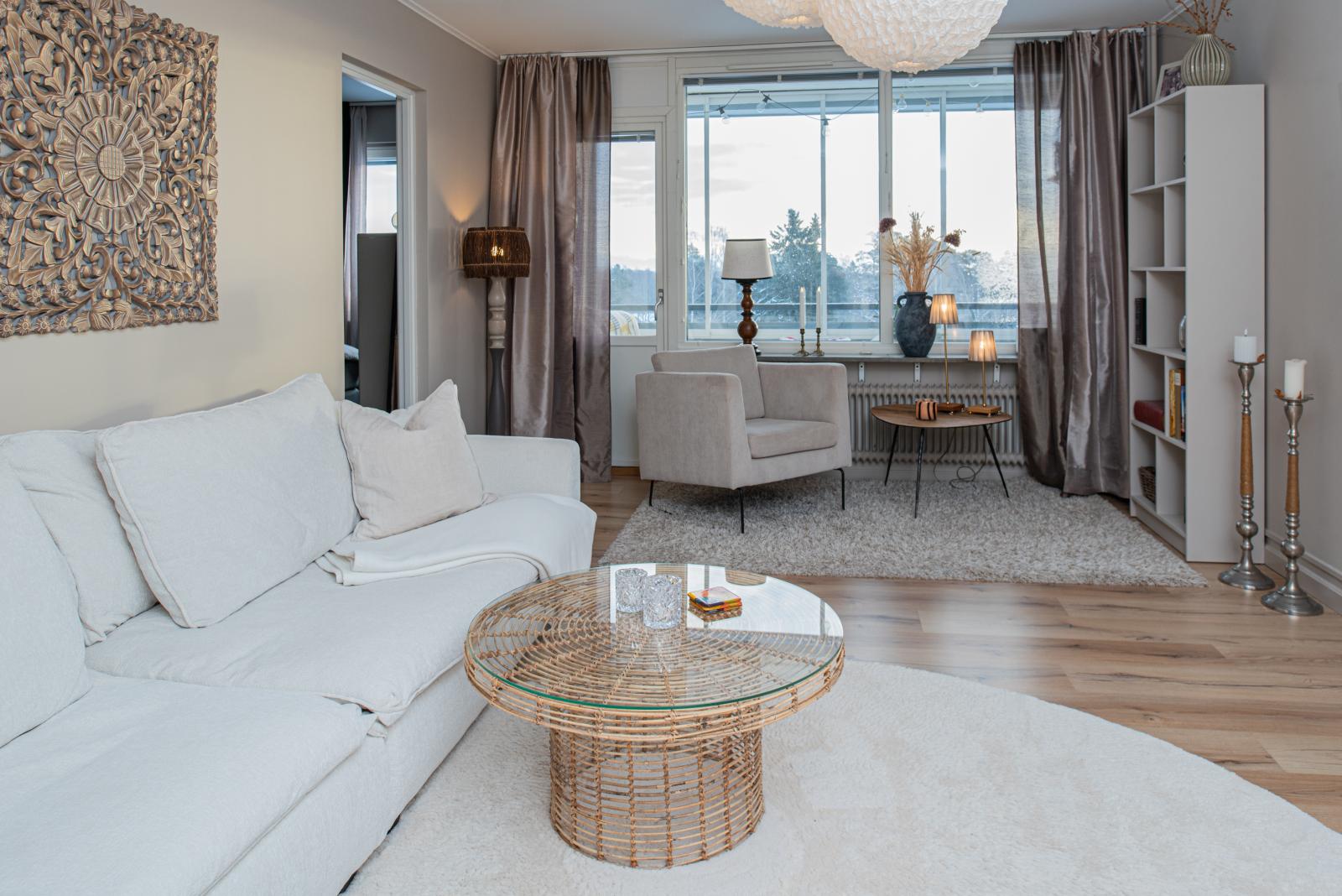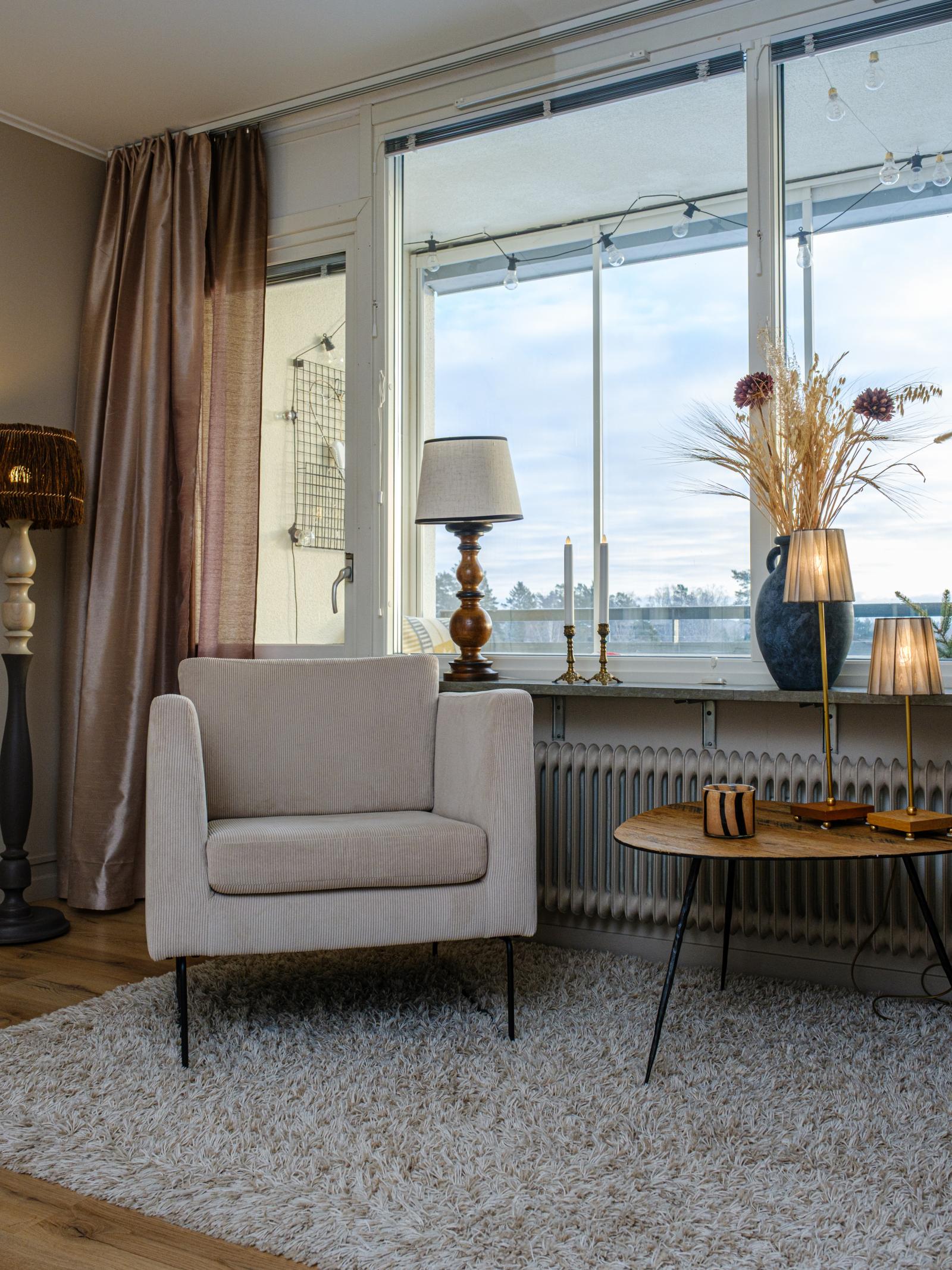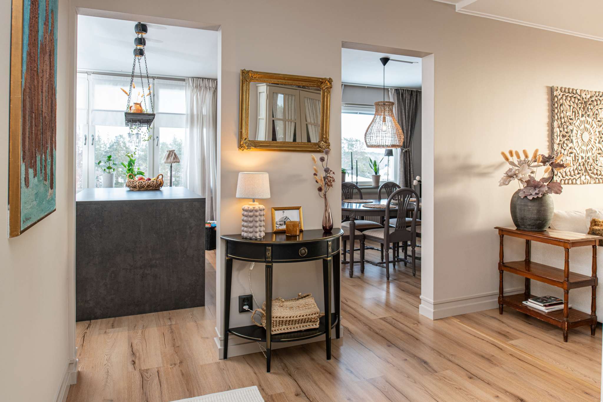 Bostaden är renoverad från topp till tå, med en stilren och konsekvent kvalitet i varje rum.