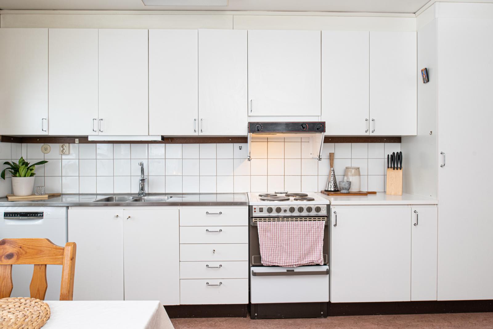 Lägenheten är luftig och alla rum är väl tilltagna och har golvmattor som är praktiska och lättstädade samt omtapetserade väggar.