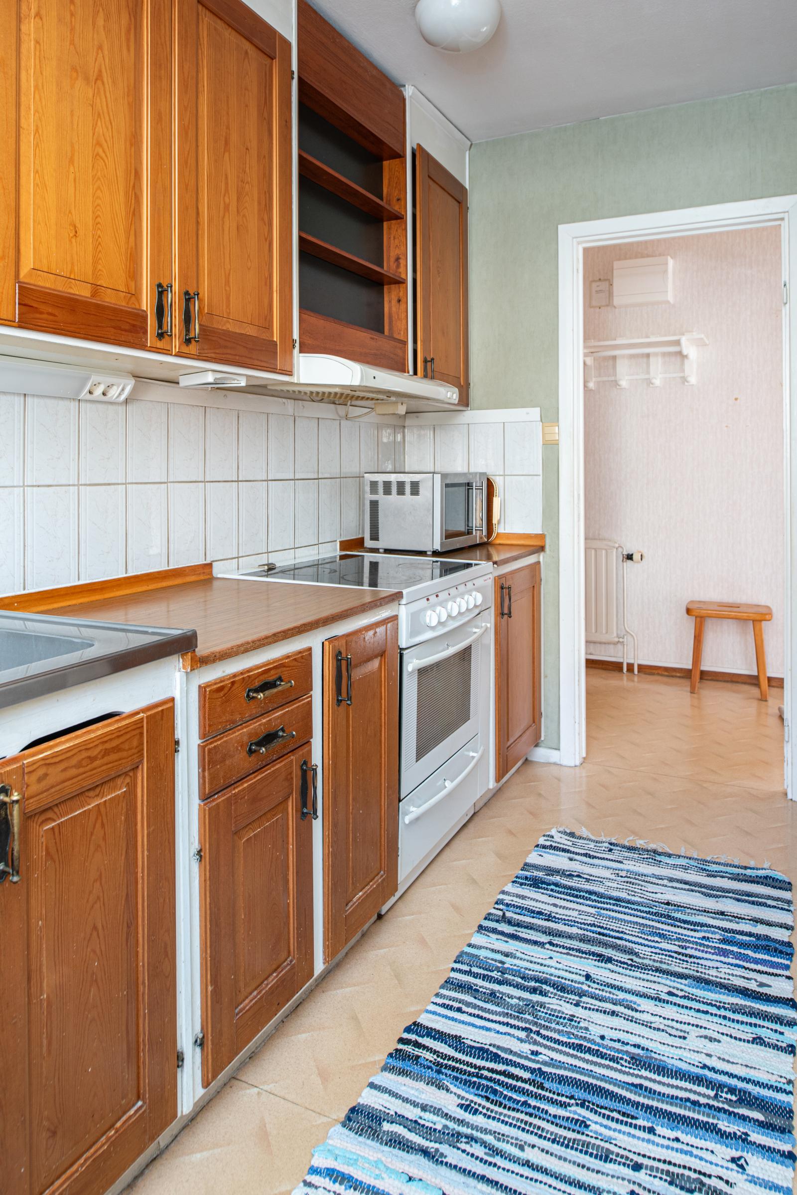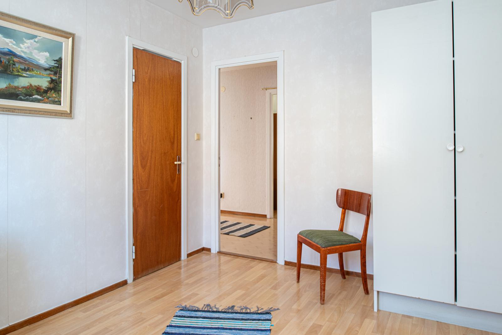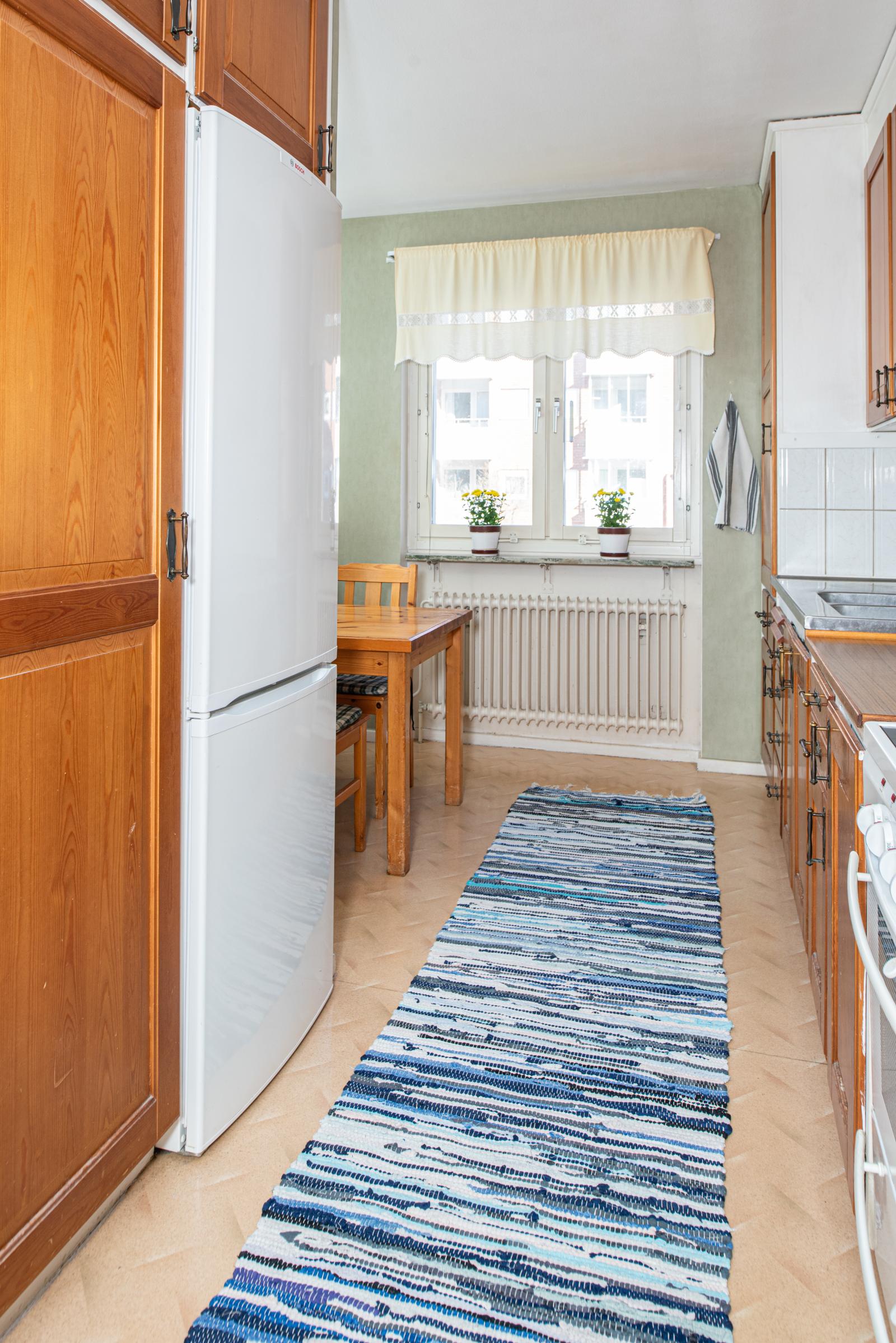 Välkommen in i lägenheten som är ljus och fin och ligger på första våningen. Hallen är rymlig och möblerbar. Intill hallen ligger köket, som är välplanerat och har gott om förvaring. Köket är utrustat med spis och kyl/frys.