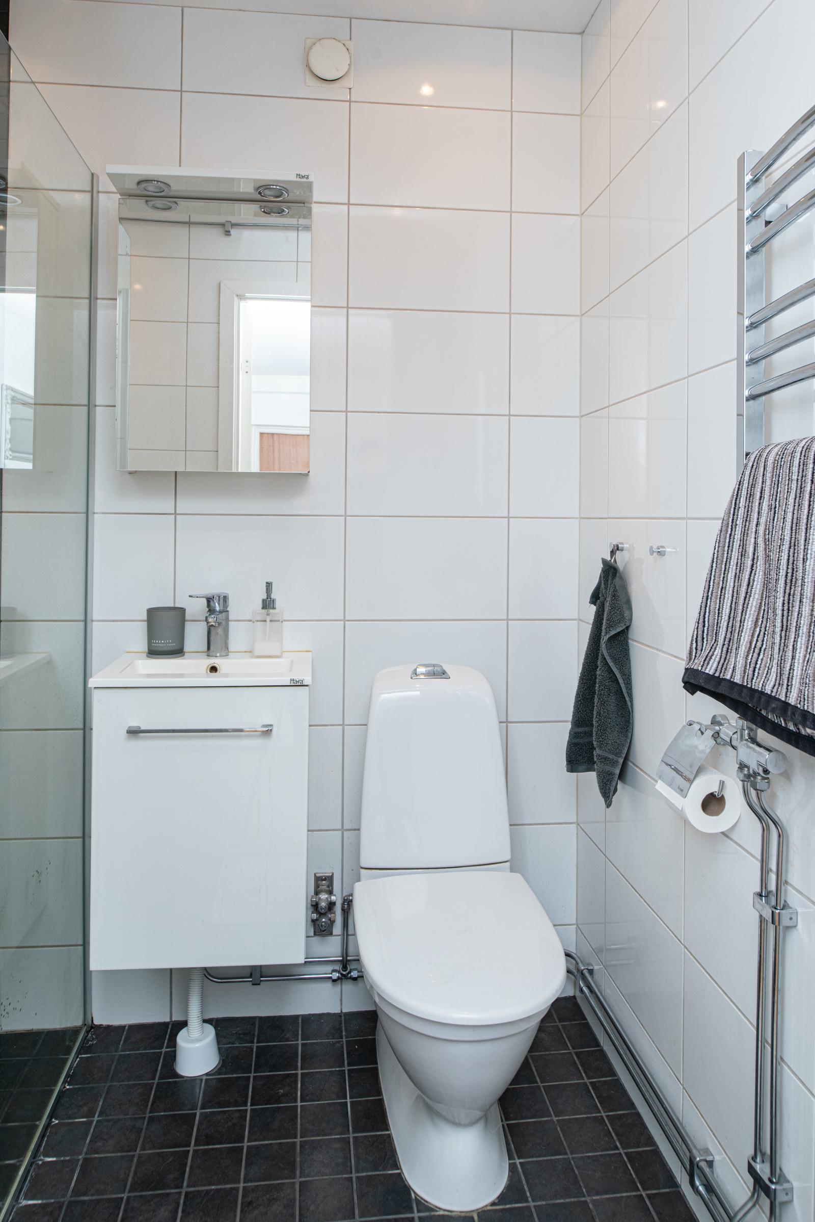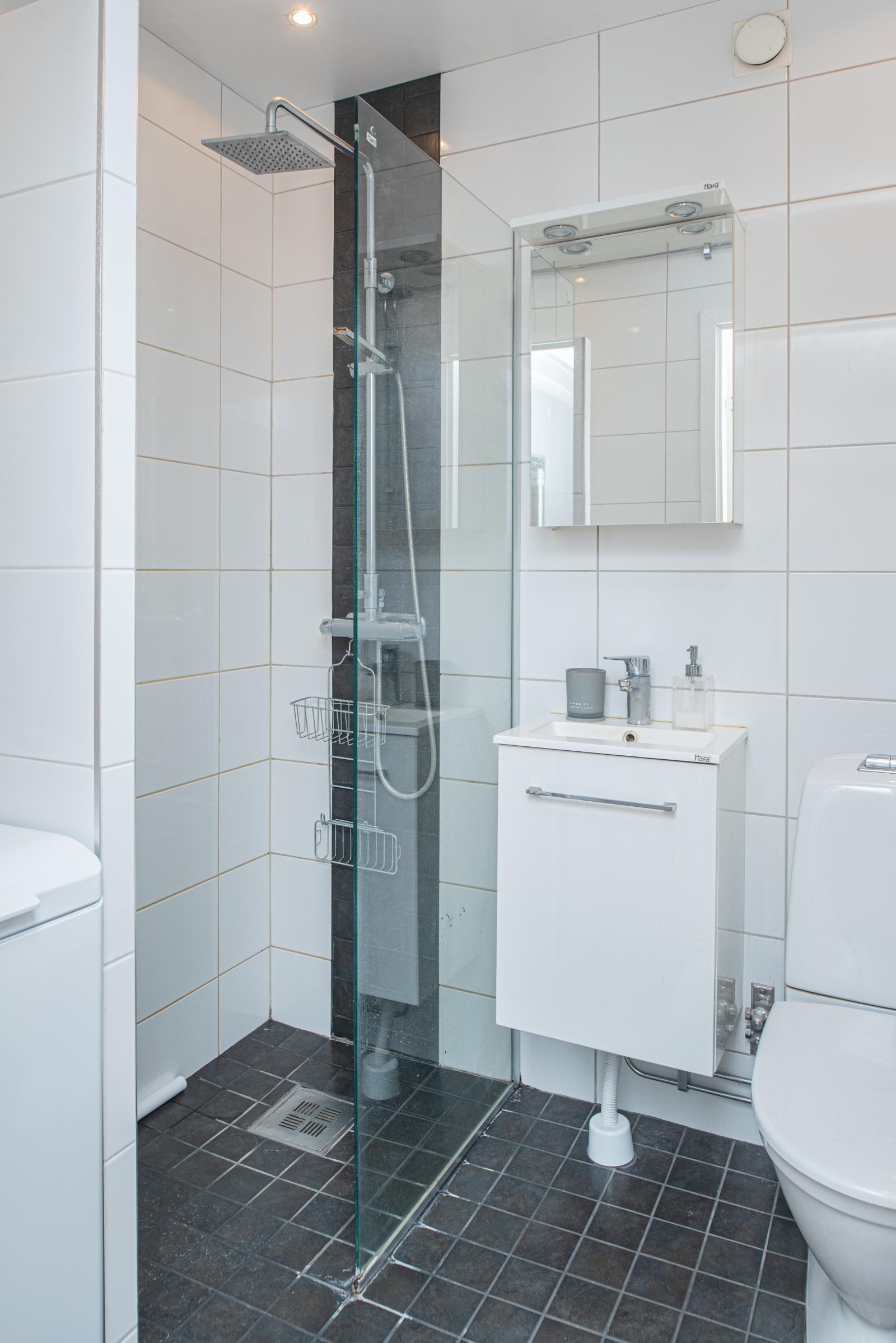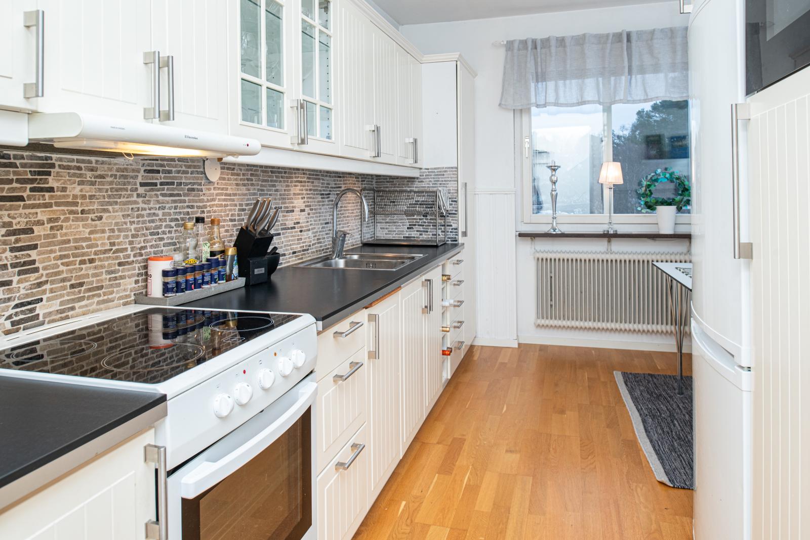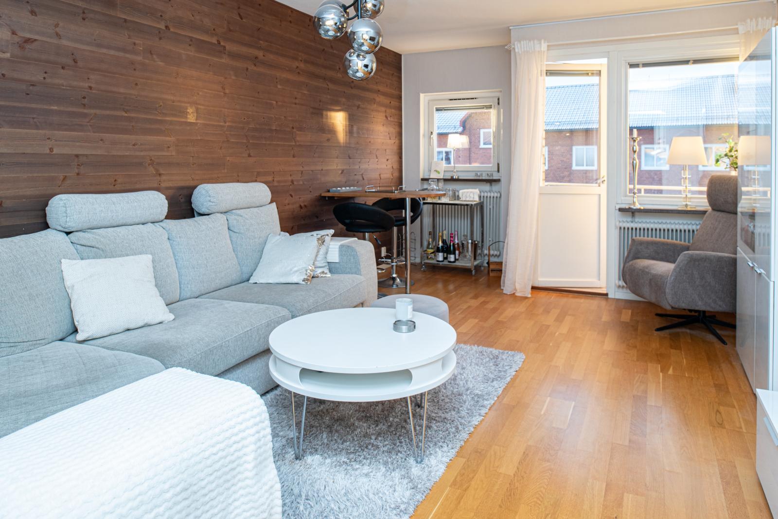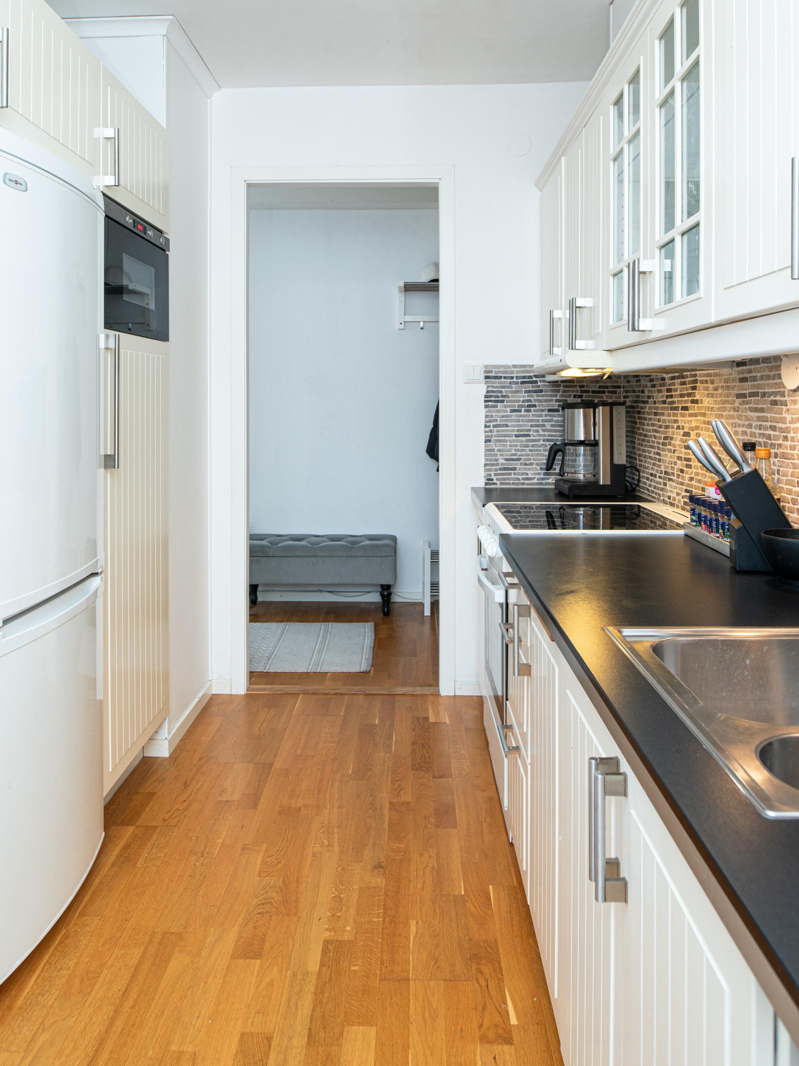 Välkomnande hall med plats för avhängning. På golvet vid entre´n ligger ett klinker golv sen ett parkettgolv. Hela lägenheten har samma parkettgolv, så rätt och så riktigt för en enhetlig känsla. Renoverat kök med bra med förvaring, utsrustat med kyl/frys och spis med häll. Stort och fint sovrum med fina ytskikt, här når du även klädkammaren. Stort vardagsrum med fint ljusinsläpp. Här når du även balkongen i söderläge. Renoverat och fint WC/dusch med kakel och klinker och ny tvättmaskin från 2025.