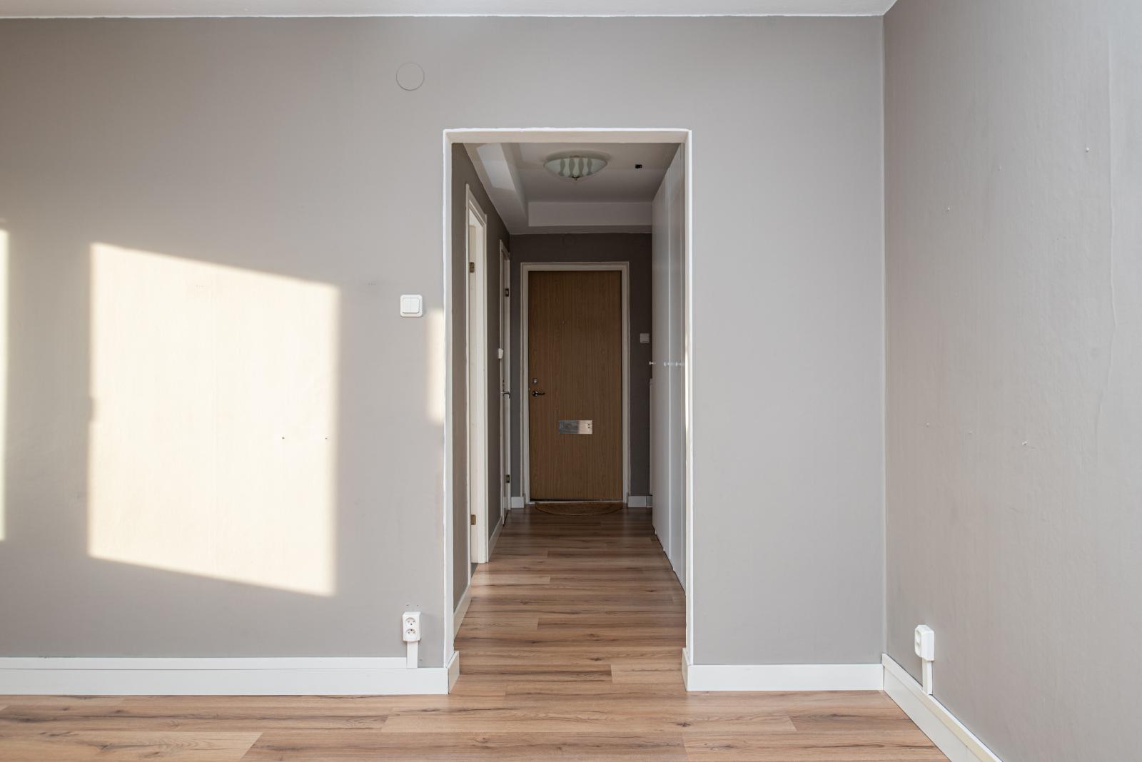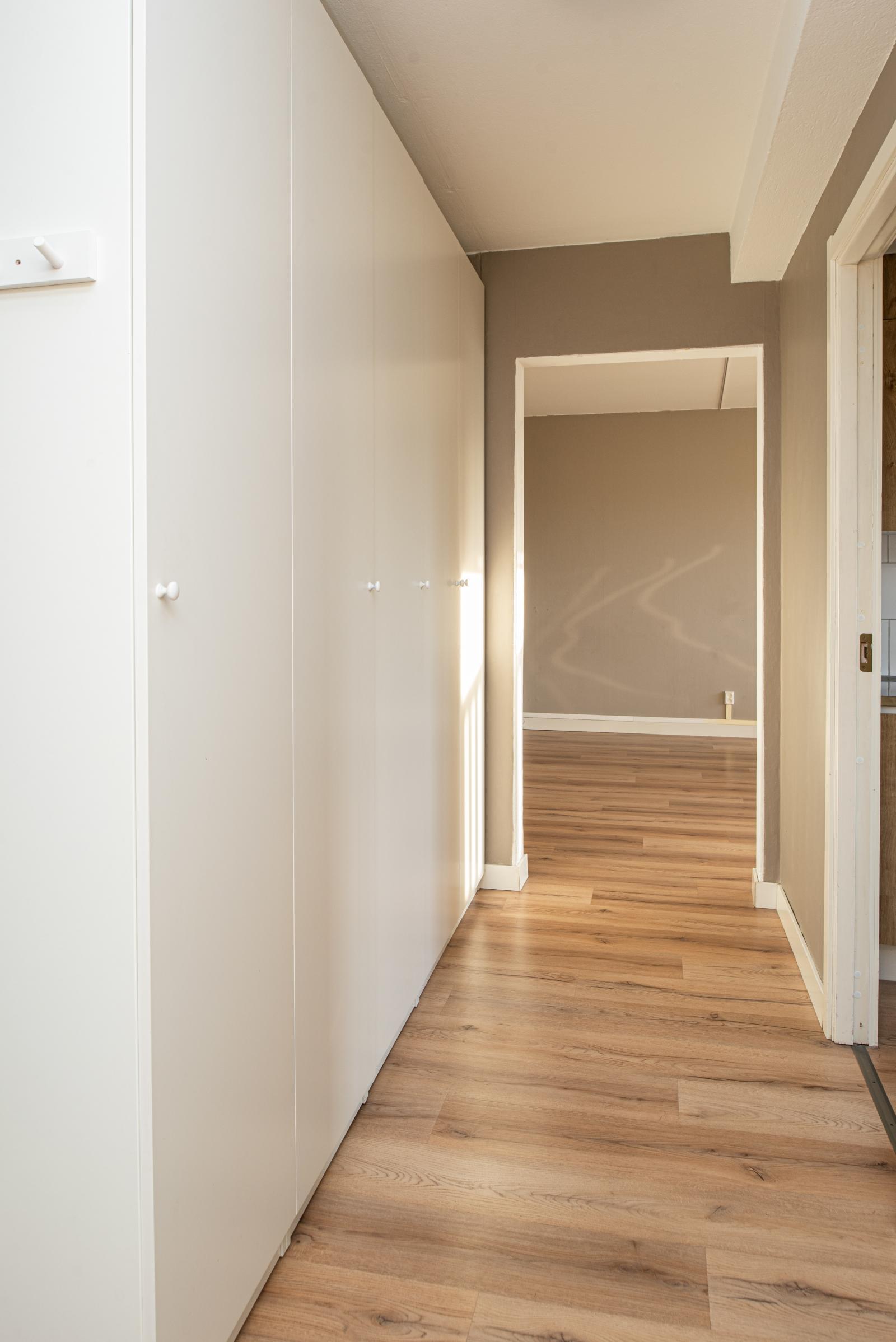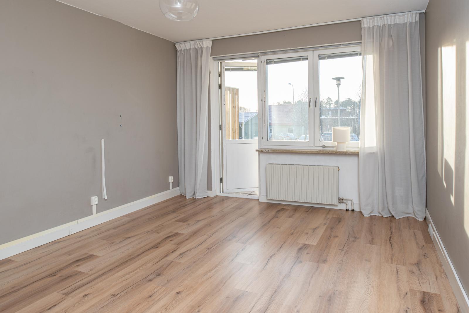 Hall med fina ytskikt och med plats för avhängning och fyra stycken garderober. Välplanerat kök med plats för matbord. Köket har köksluckor med plastfilm på samt är utrustat med kyl/frys och spis. Stort vardagsrum med utgång till egen uteplats. WC/dusch med våtrumsmatta och våtrumstapet.