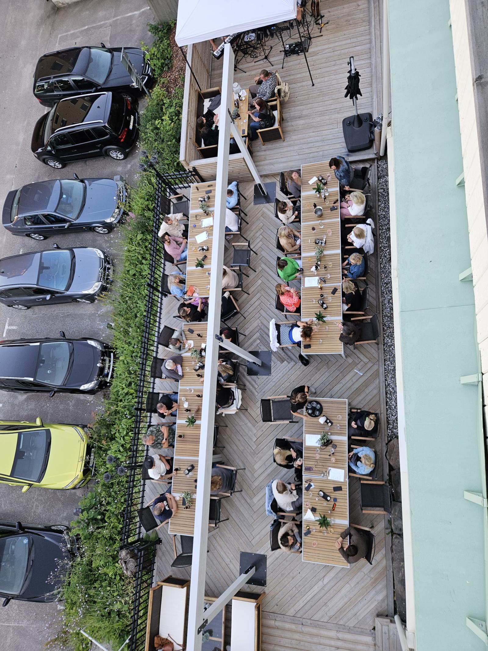 Restaurang med kök från 2022 - fullt utrustat. Plats för 50 st sittande gäster, 20 st på inglasad veranda samt 80 platser utomhus. Finns ett tillstånd idag på 300 gäster ute.