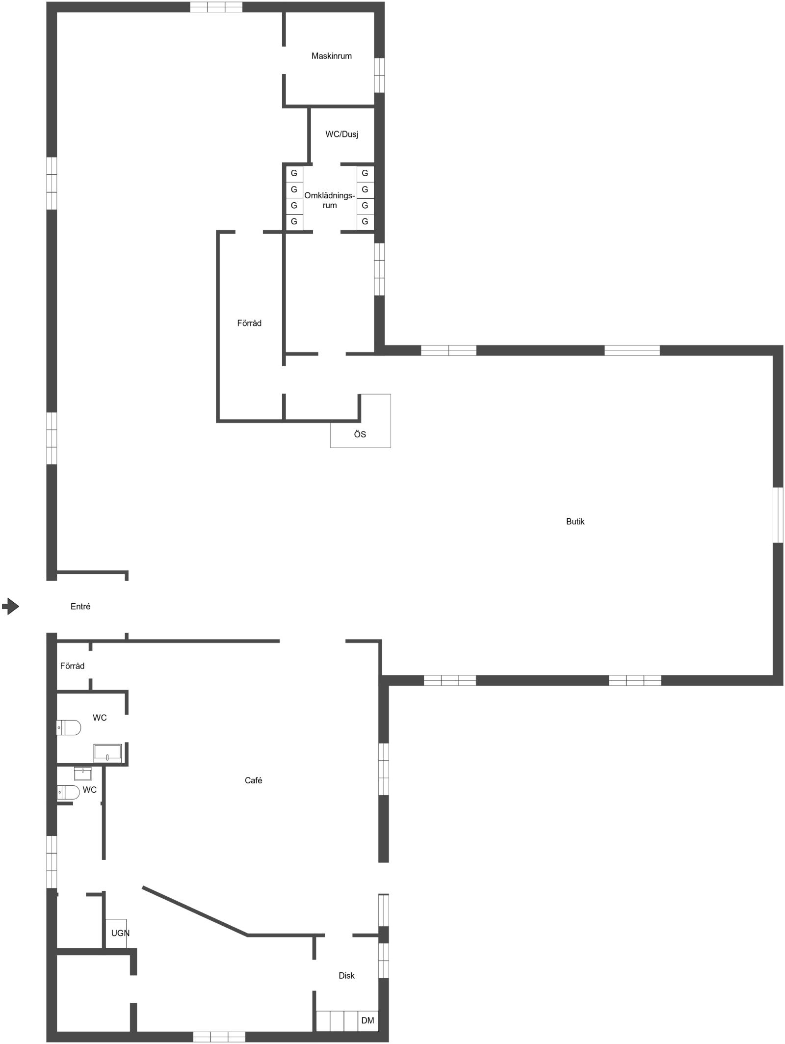Lokalen är rymlig och kan anpassas för en mängd olika verksamheter beroende på behov och affärsidé. Här har det tidigare bedrivits handelsverksamhet i kombination med café, men möjligheterna sträcker sig långt bortom dagens användning. Med rätt vision kan lokalen enkelt utvecklas och anpassas efter nya koncept. I fastigheten finns även kontorsutrymmen samt toaletter, vilket ger goda praktiska förutsättningar för både personal och daglig drift.