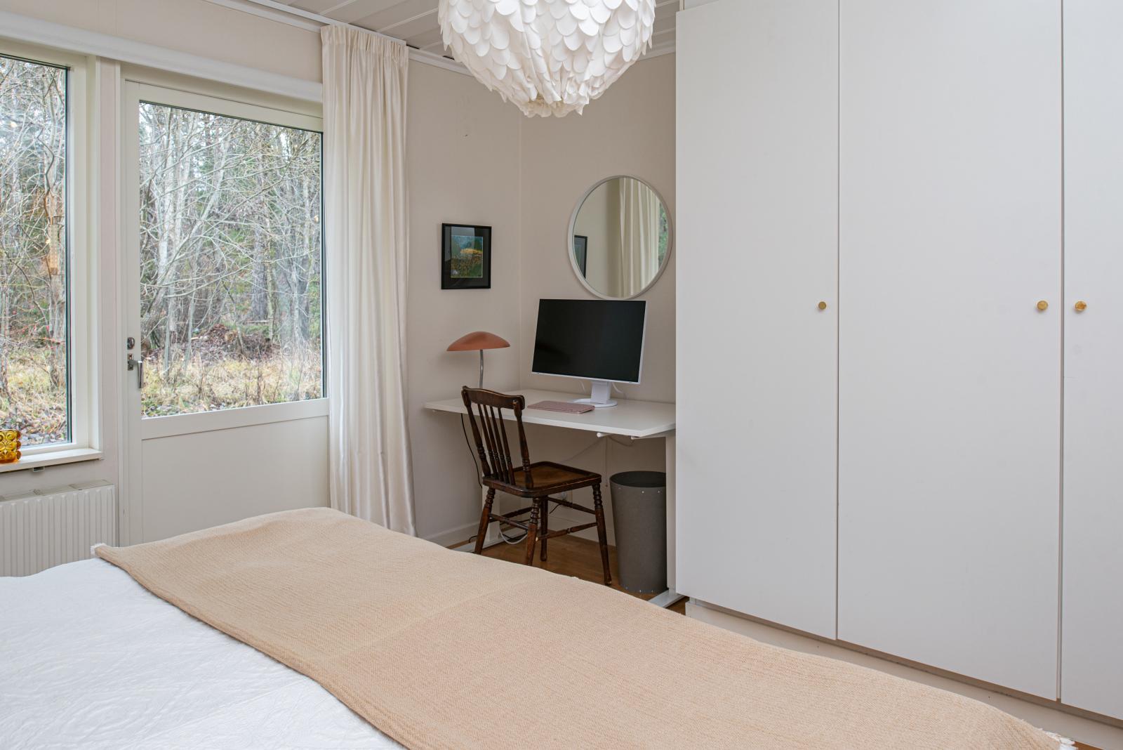 Hörntomten ger plats för lek, odling och det stora skogspartiet inbjuder till både lek och strövtåg. Det fristående rymliga erbjuder både förvaring och plats för bilen.