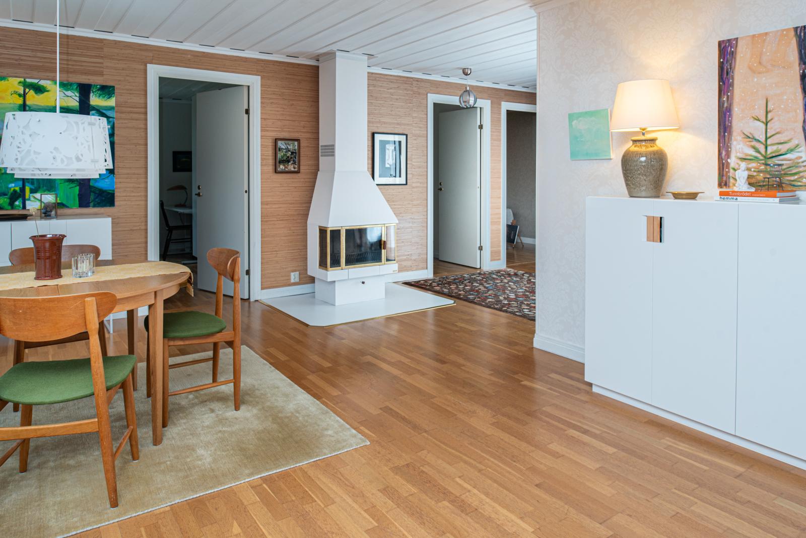 Huset har tre sovrum, ett stort vardagsrum med väldigt fint ljusinsläpp och braskamin som skapar en mysig atmosfär under årets kallare månader. Det rymliga köket är smakfullt renoverat likaså WC, vilket ger ett modernt intryck och hög komfort.