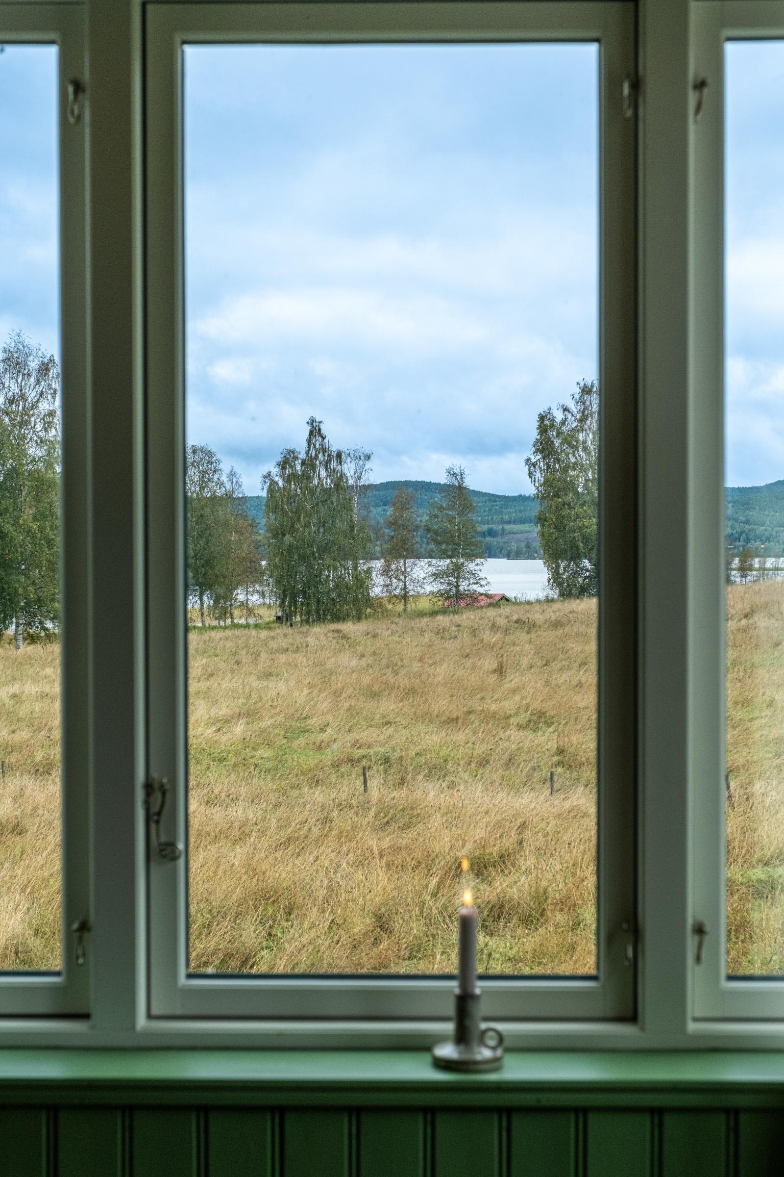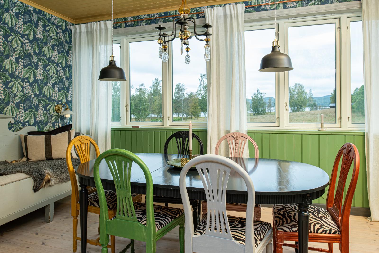Vardagsrummet har trägolv och en täljstenskamin som ger fin värme. Härifrån är det öppet ut mot matrummet. Ett underbart rum med många fönster och utsikt över åker och sjö. Det finns möjlighet att duka för hela familjen så jul och kalas är givet här.