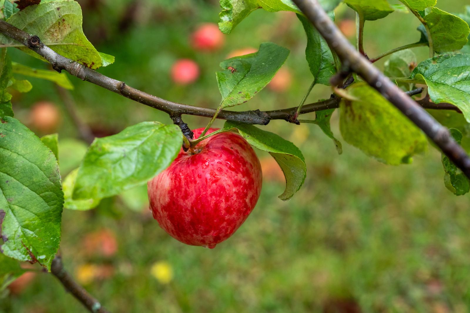 Det är en liten mysig tomt runt huset som går att hålla väldigt lättskött men det finns ändå äppelträd, syrenbuskar och ett litet förråd, fd hönshus.