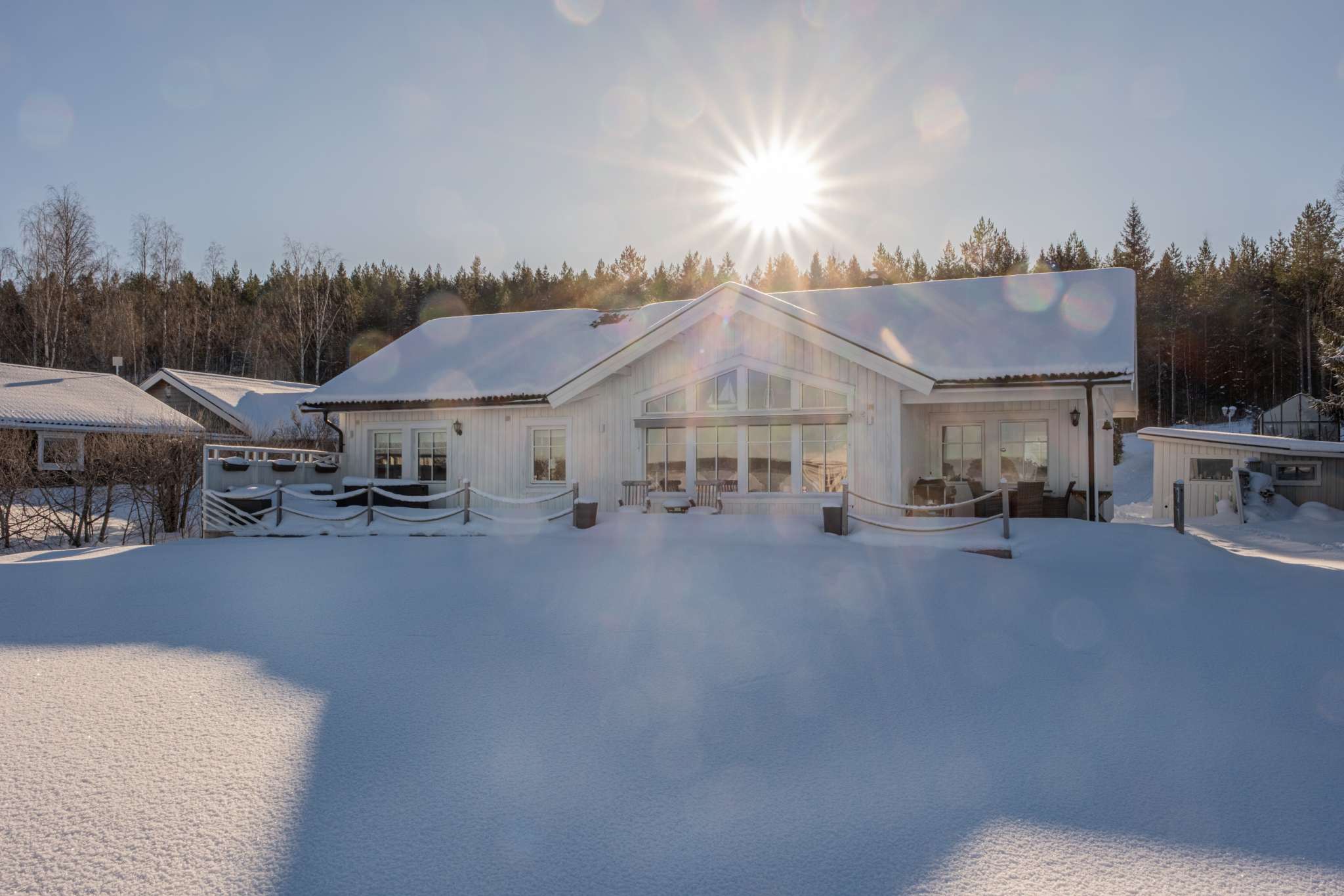 Bara några hundra meter mot stan har du golfbanan med 18-hål, restaurang och även preparerade skidspår under vinterhalvåret.