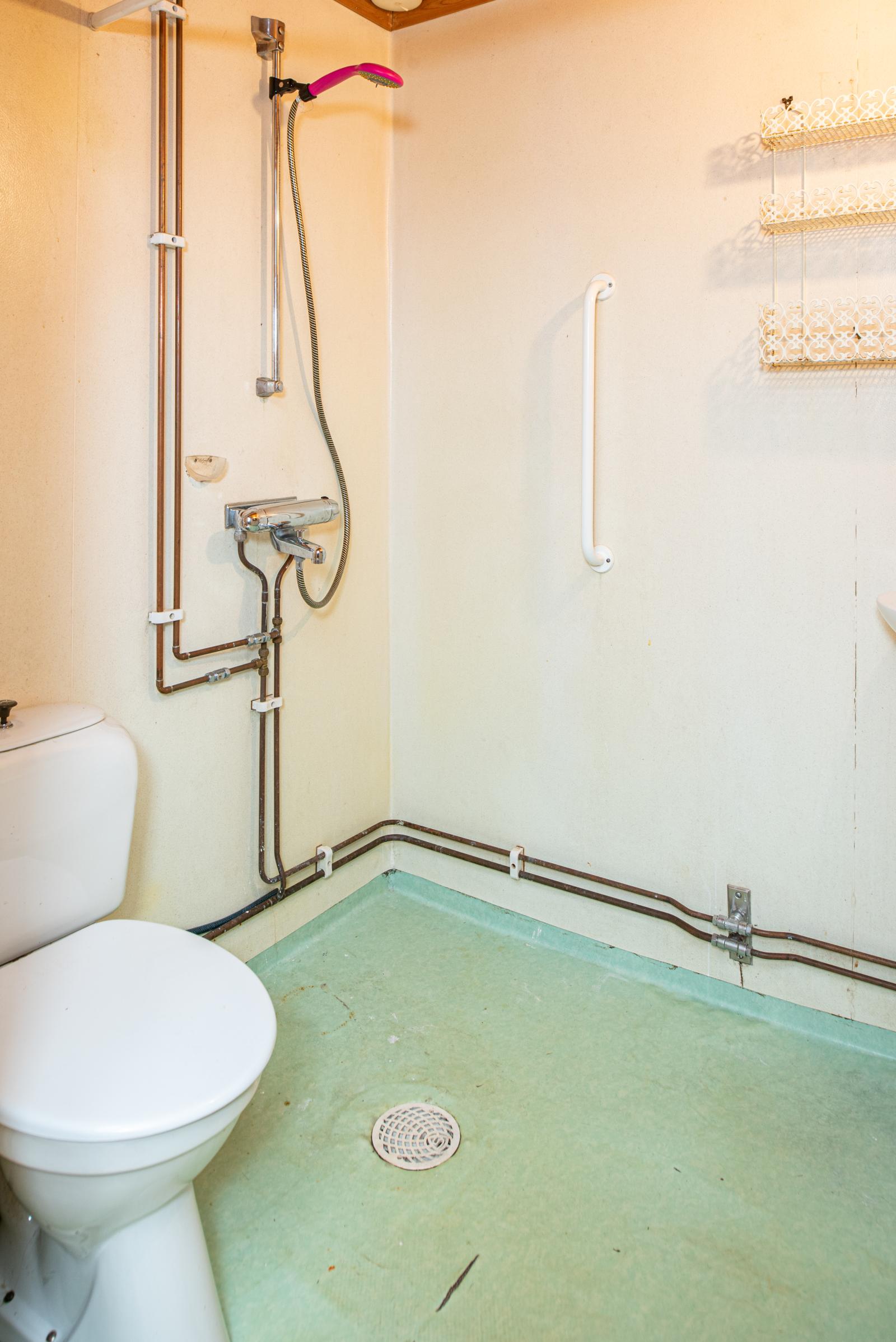 Kammare innanför köket som kan användas både som kontor eller sovrum. En skrubb när varmvattenberedaren, en extra frys och elpatronen finns.