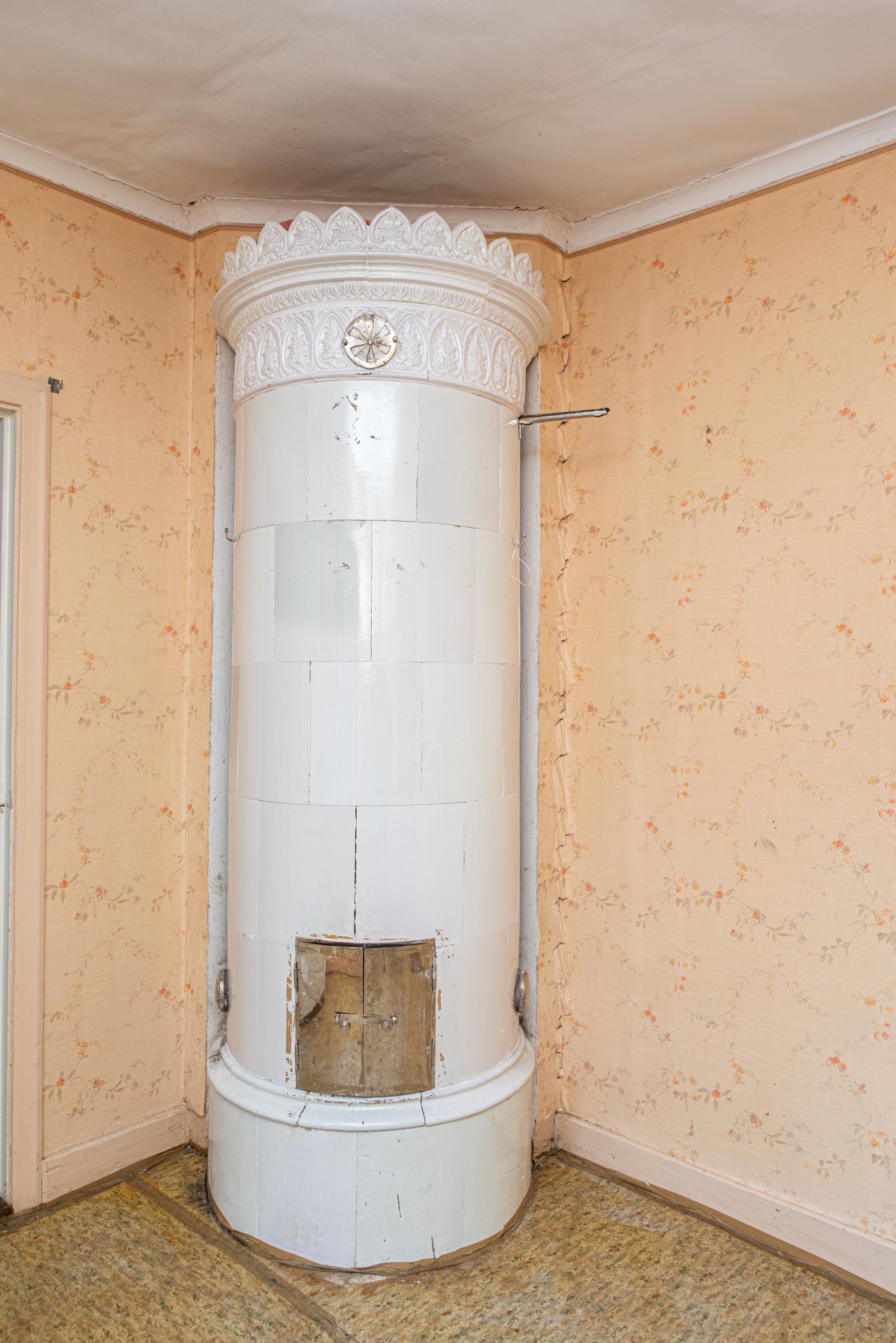 Med kakelugn, genomgångsrum.