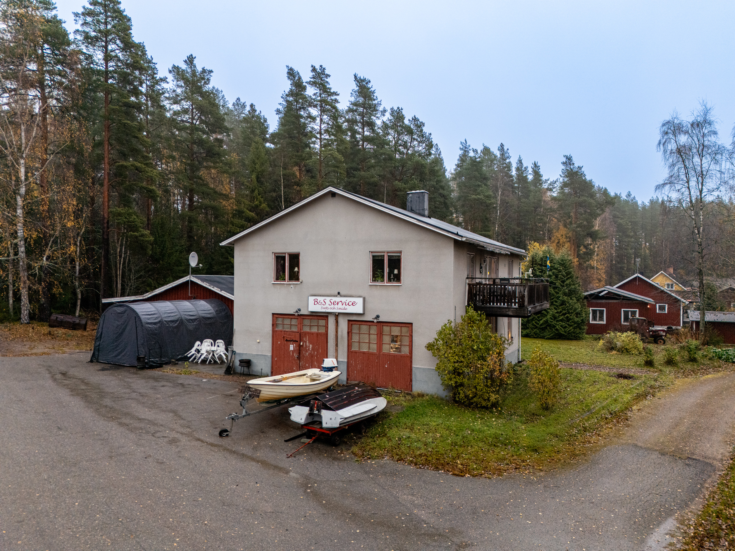 Välkommen till en unik fastighet med stora möjligheter, belägen strax utanför Bollnäs med närhet till både stad och natur. Här bor du bekvämt på övervåningen i en rymlig och fullt utrustad lägenhet, samtidigt som du har tillgång till en generös lokal på bottenvåningen som lämpar sig utmärkt för verksamhet, verkstad, garage eller hobbyverksamhet. Fastigheten erbjuder en perfekt kombination av boende och funktionella ytor för dig som vill ha plats för både hem och intresse under samma tak.