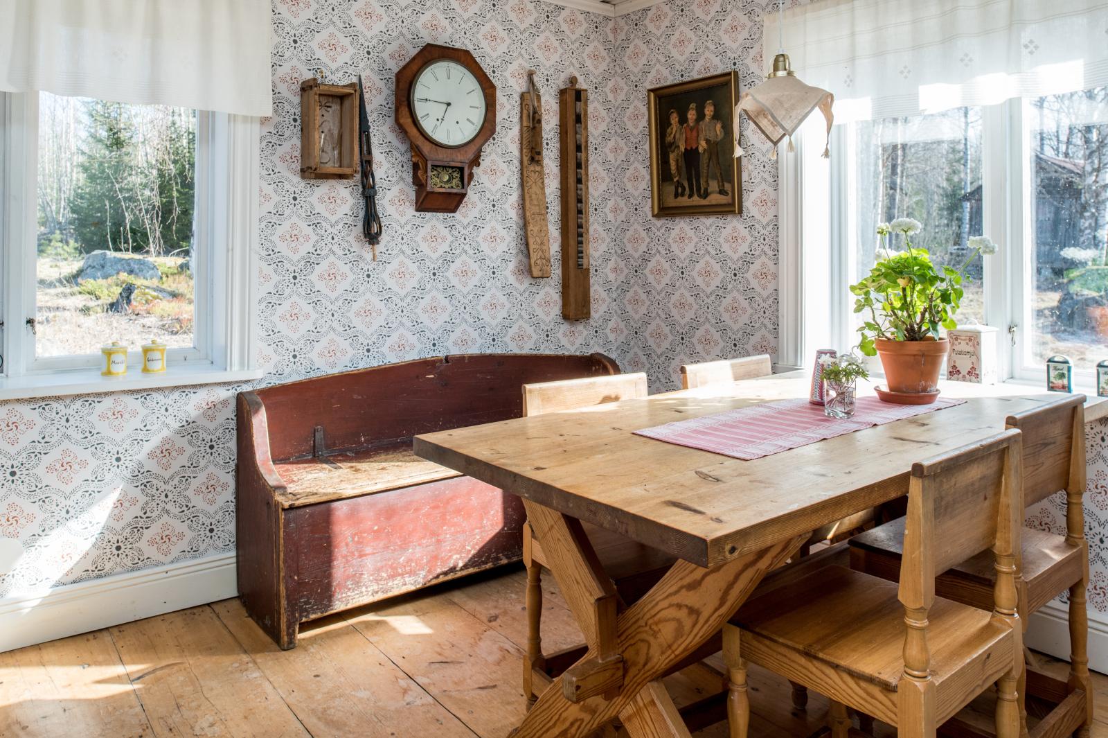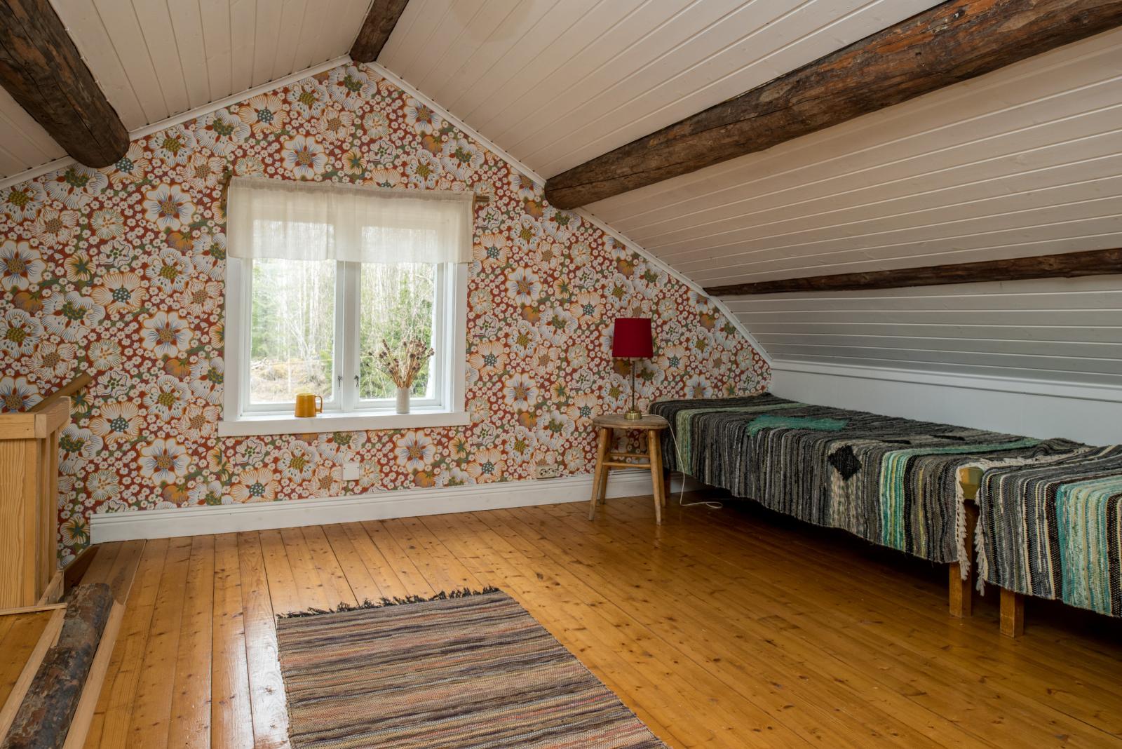 Fastigheten består av ett klassiskt soldattorp med kök, vardagsrum och två sovrum. Intill finns en ombyggd lada där storstugan med öppet upp till nock ger en härlig rymd. Här finns även ett nyare kök, duschrum, bastu och extra sovplatser – perfekt för både familj och gäster. På gården finns dessutom en rymlig loge med goda förvaringsmöjligheter.