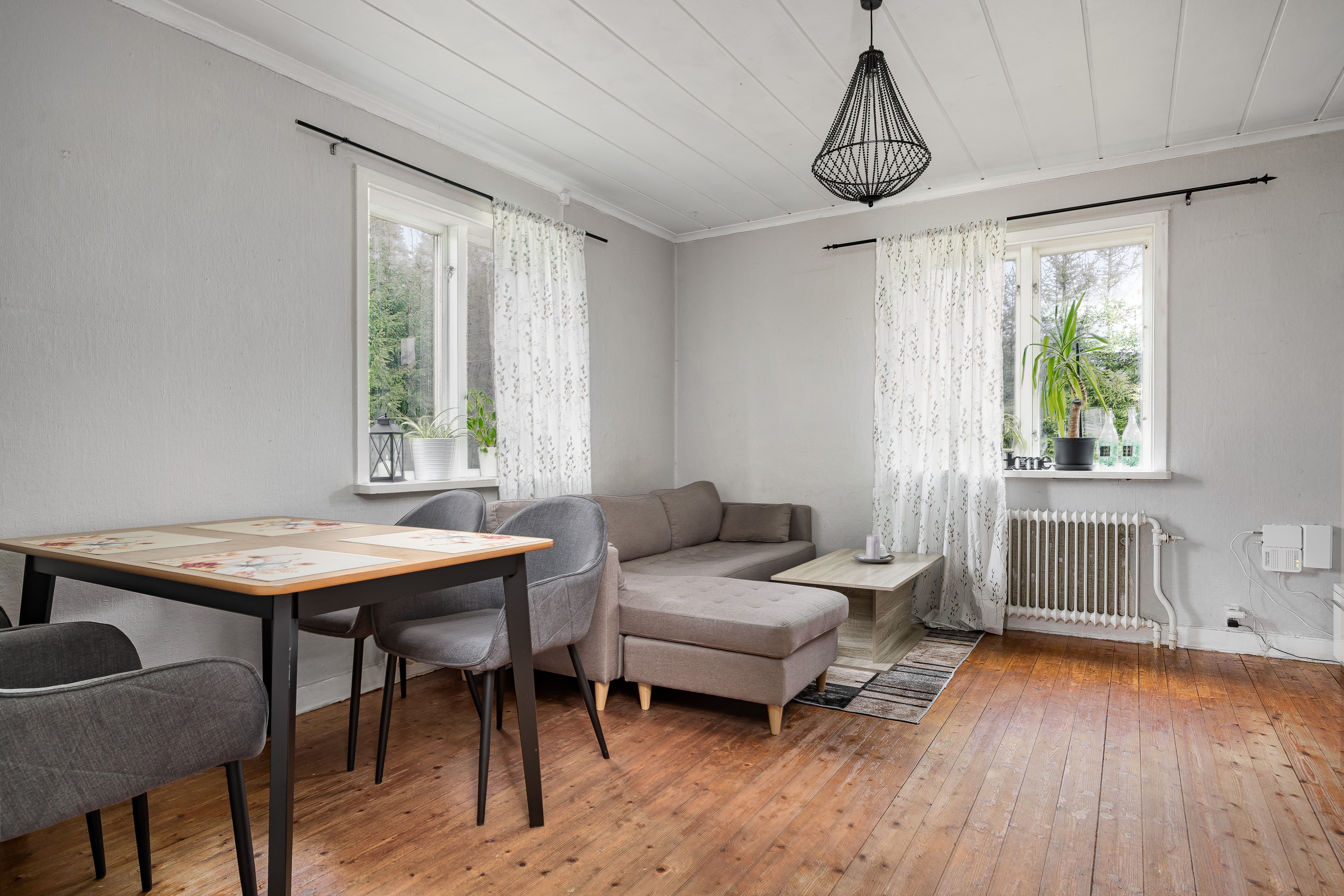 Redan när du kliver in möts du av en inbjudande atmosfär med ljusa ytor och en genomtänkt planlösning. Köket är fullt utrustat och har gott om arbetsyta för den matlagningsintresserade. Intill finns ett trevligt matrum som naturligt övergår i ett rymligt vardagsrum med fint ljusinsläpp – en självklar samlingspunkt för familj och vänner.