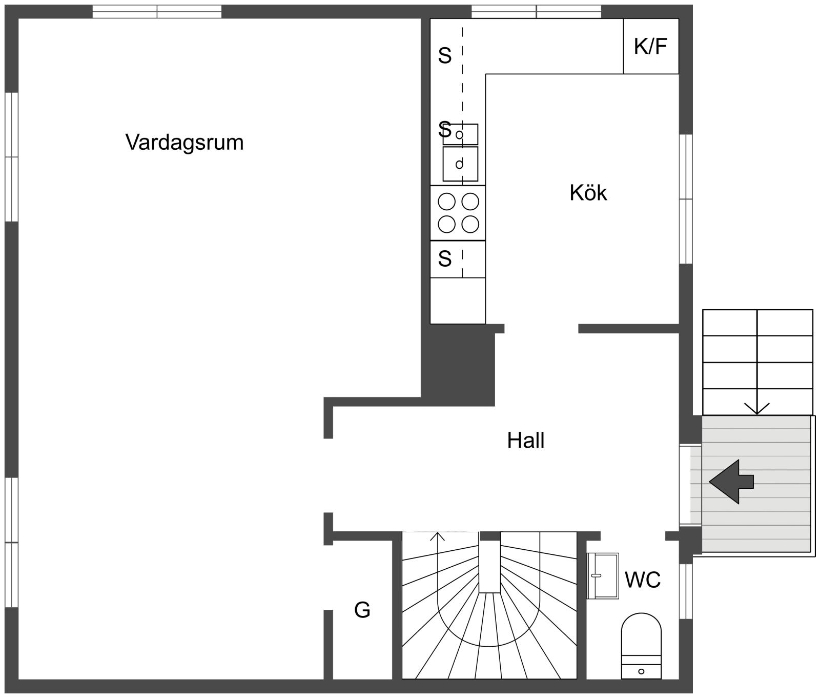 Rakt fram från hallen öppnar det stora matrummet och allrummet upp sig i en social och trivsam yta. Här finns gott om plats för både matgrupp och soffdel. Ett enhetligt trägolv löper genom hela entréplanet och skapar en varm och sammanhållen känsla. För den som önskar ytterligare ett sovrum finns möjlighet att dela av rummet och skapa ett extra rum även på detta plan.