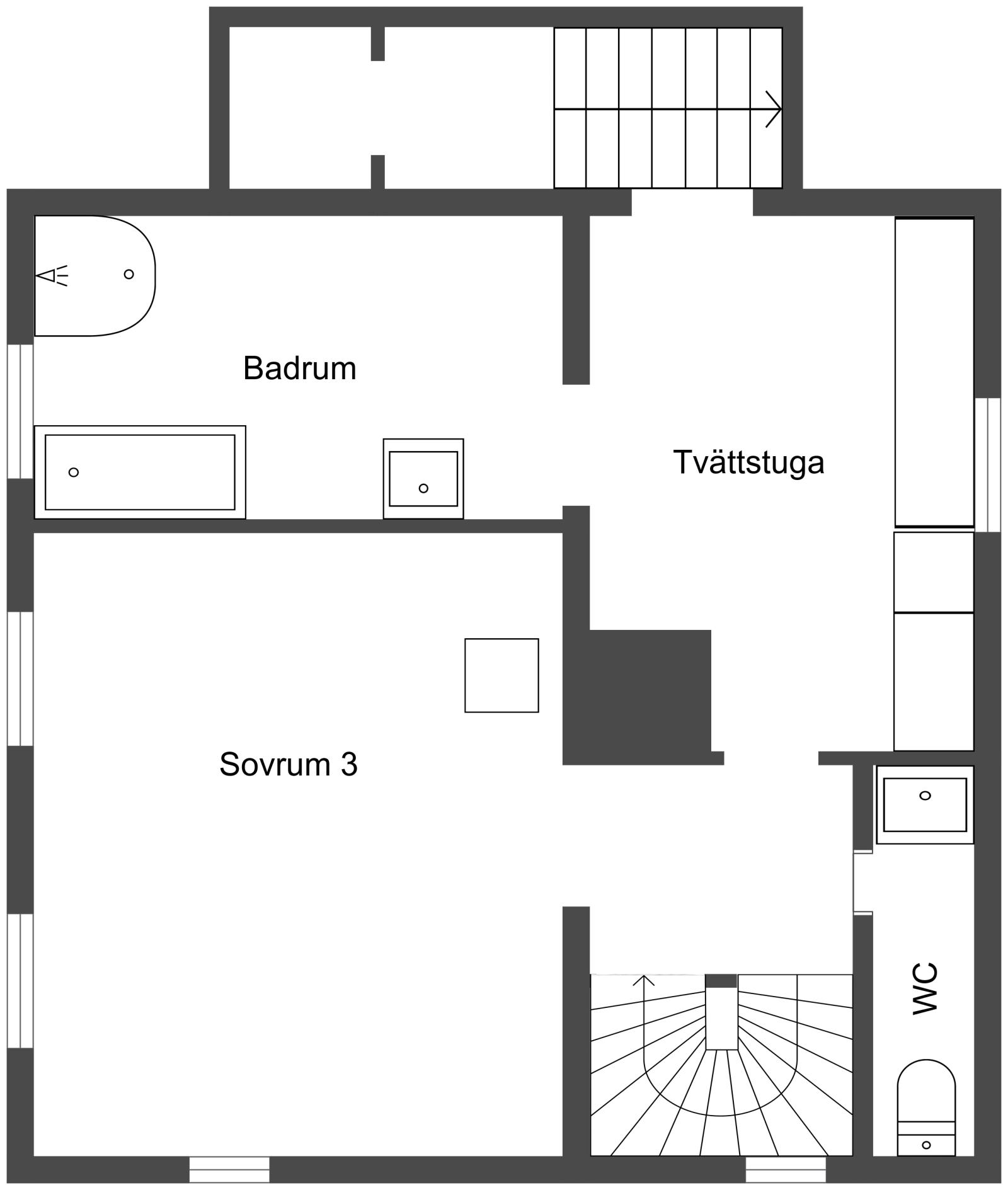 Källarplanet är omgjort och erbjuder nu ett fräscht och modernt badrum som är helkaklat och utrustat med både dusch och badkar. Tvättstugan är uppdaterad och funktionell, med mycket bänkyta. Här finns även en separat wc samt ett sovrum med takfönster som ger fint ljusinsläpp trots källarplan. Dessutom finns praktiska förvaringsutrymmen och en hall med groventré och utgång till trädgården.