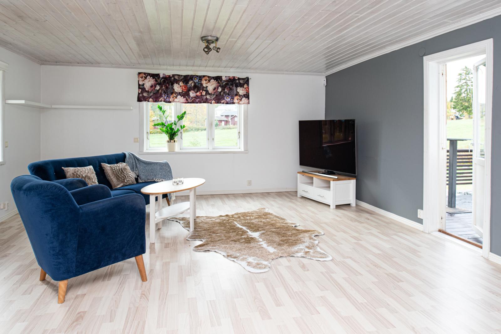 Vardagsrummet Är så pass stort så du skulle kunna bygga ett sovrum till men ändå ha gott om plats. Det finns en dörr ut till altanen.