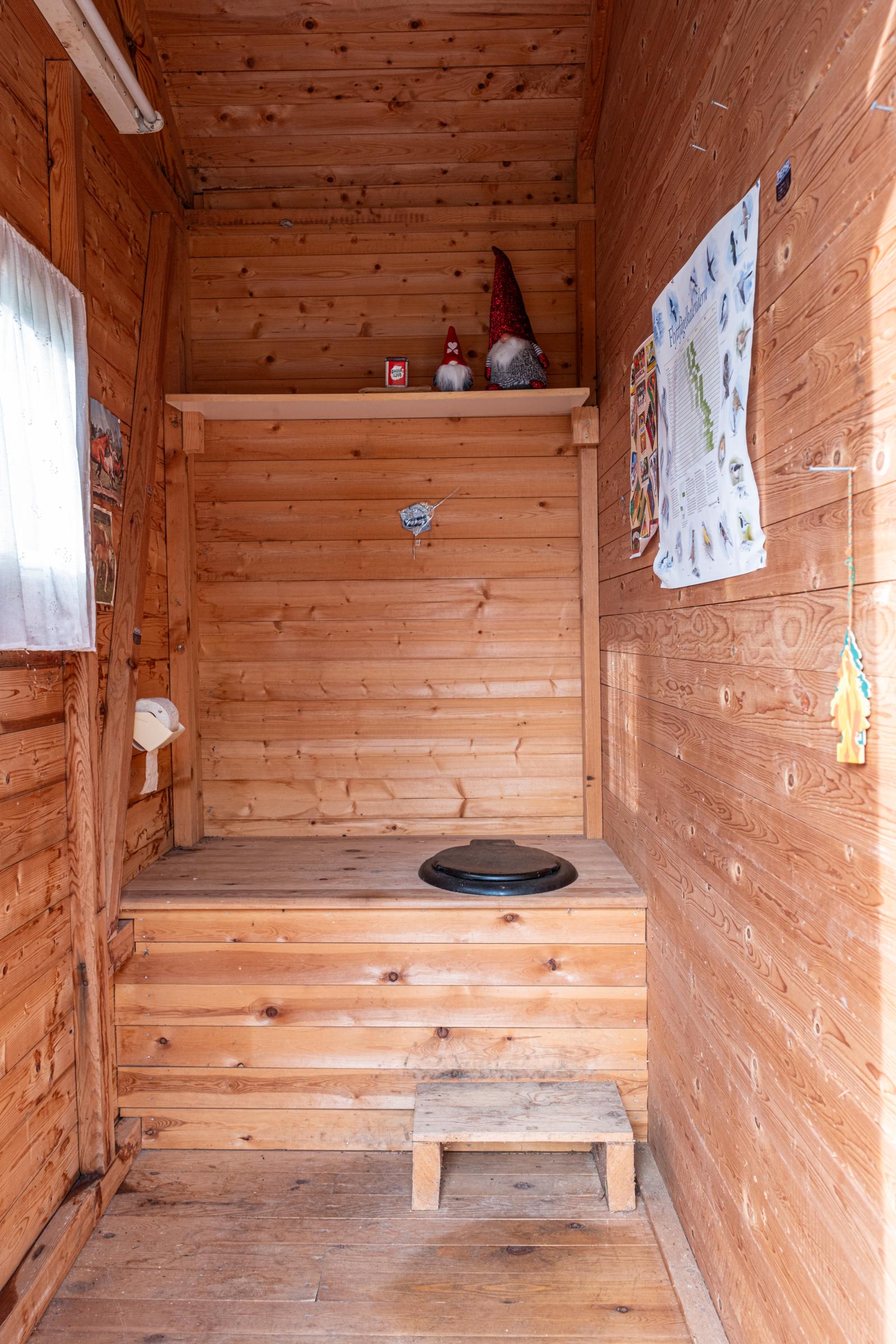 Ett uthus med förråd och ett gulligt utedass för den som lånar gäststugan.