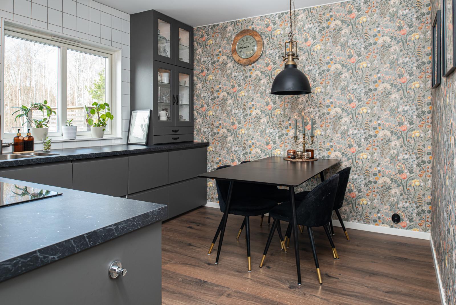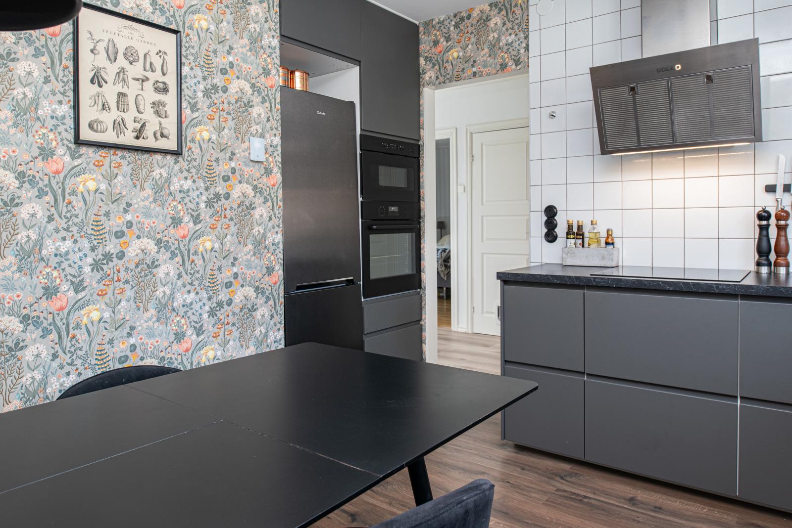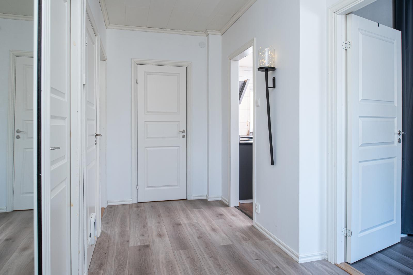 Hallen välkomnar dig med plats för avhängning. Vidare in har vi det smakfullt, stilrent och renoverade köket från år 2021 med plats för matgrupp, köket har även vattenburen golvvärme.