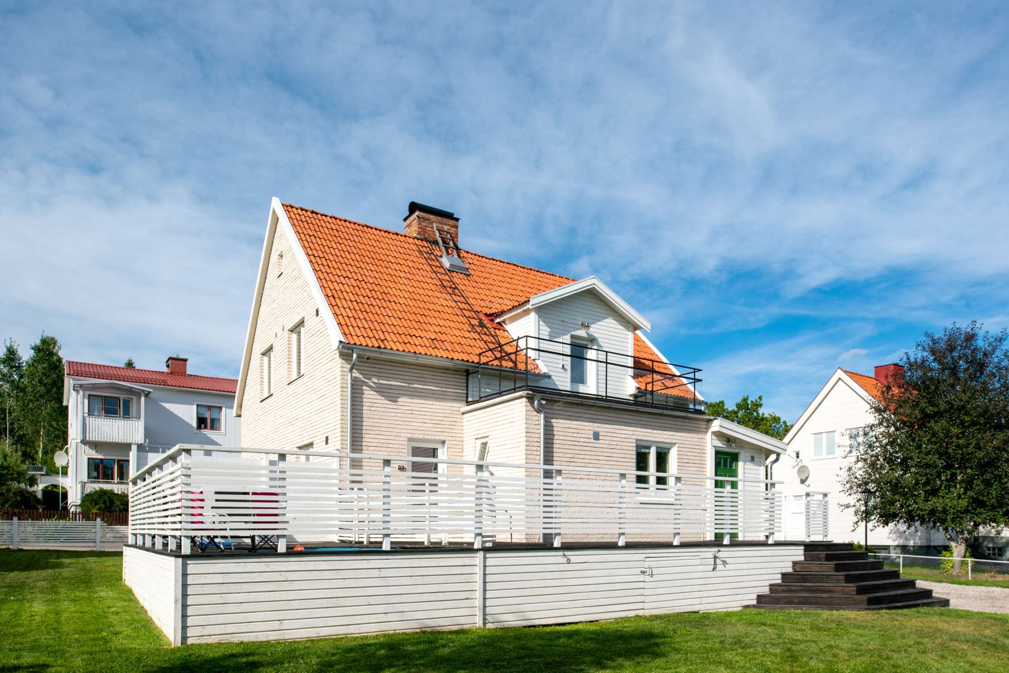 Här är villan som bör passa ganska många. Huset har renoverats fram till idag i en modern stil med en varm och hemtrevlig känsla. De flesta ytskikt är bytta eller målade - valda i ljusa och varma färger. Gott om förrådsutrymmen och härligt ljusinsläpp från flera håll.