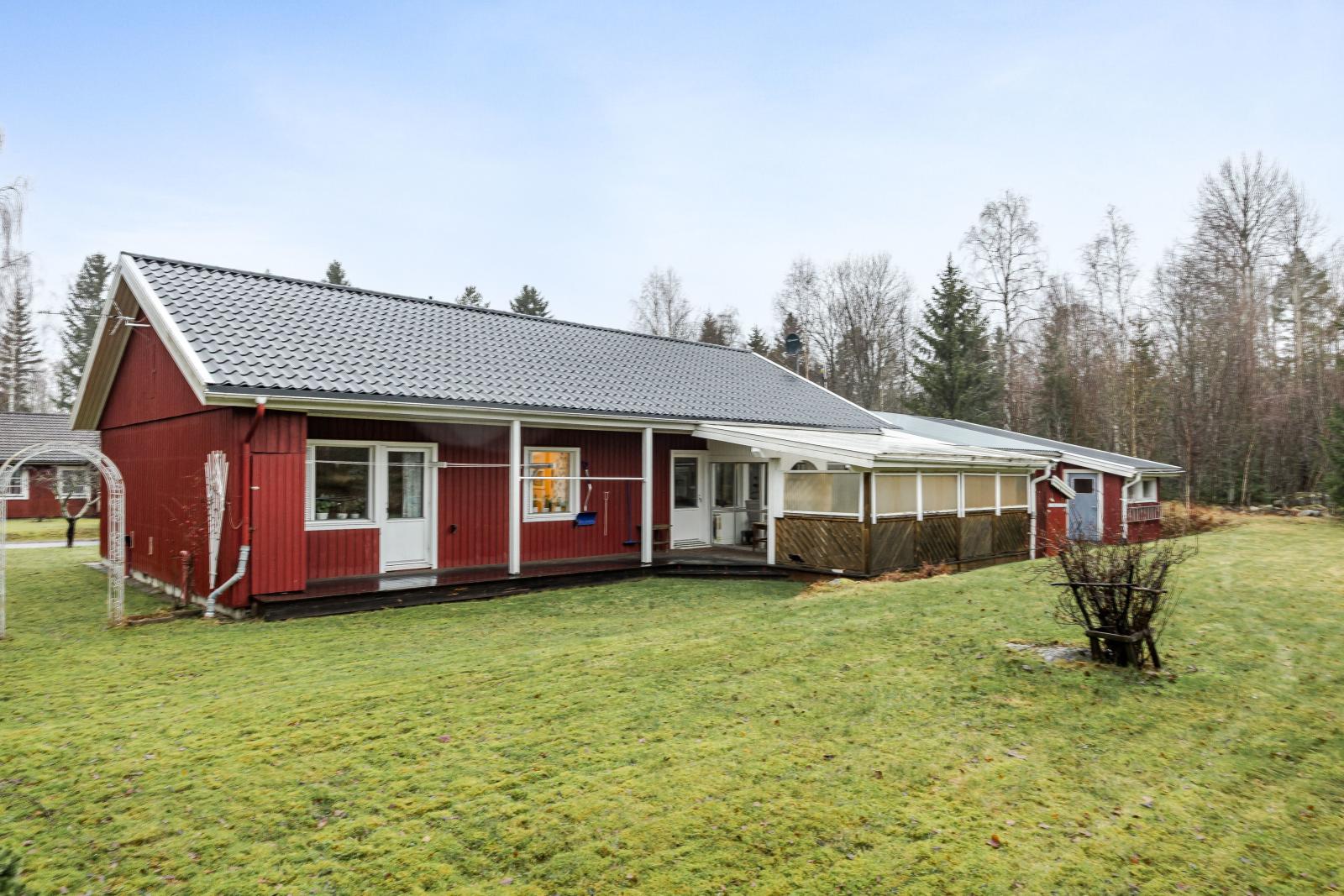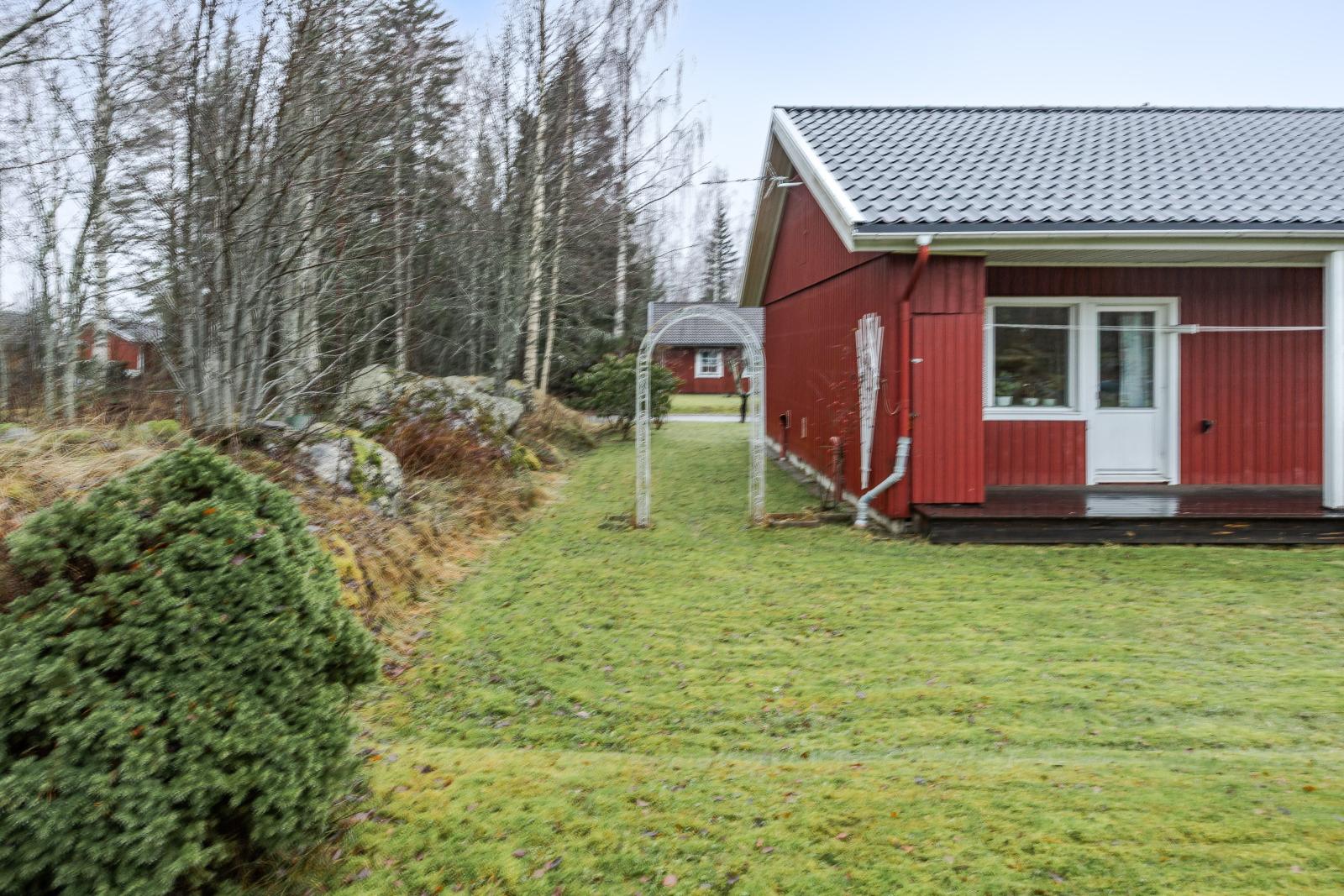 Med fönster och altandörr mot baksidan.