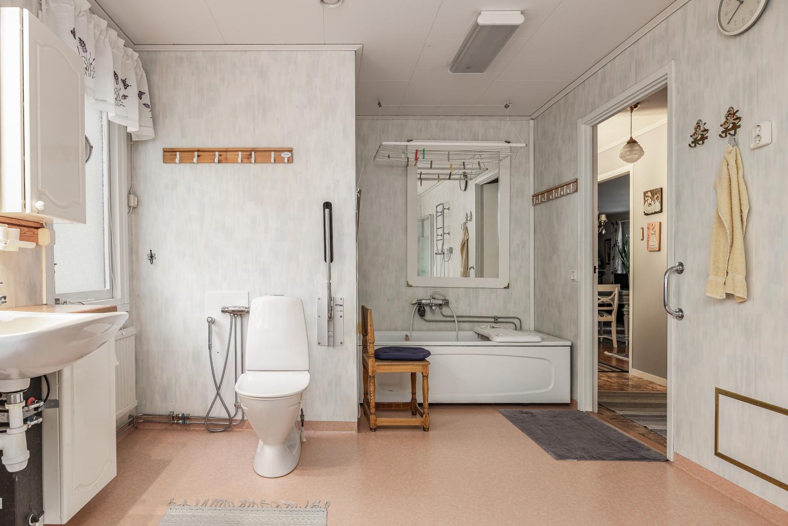 Badrummet är stort och handikappanpassat. Här finns både dusch och badkar samt givetvis wc och handfat.