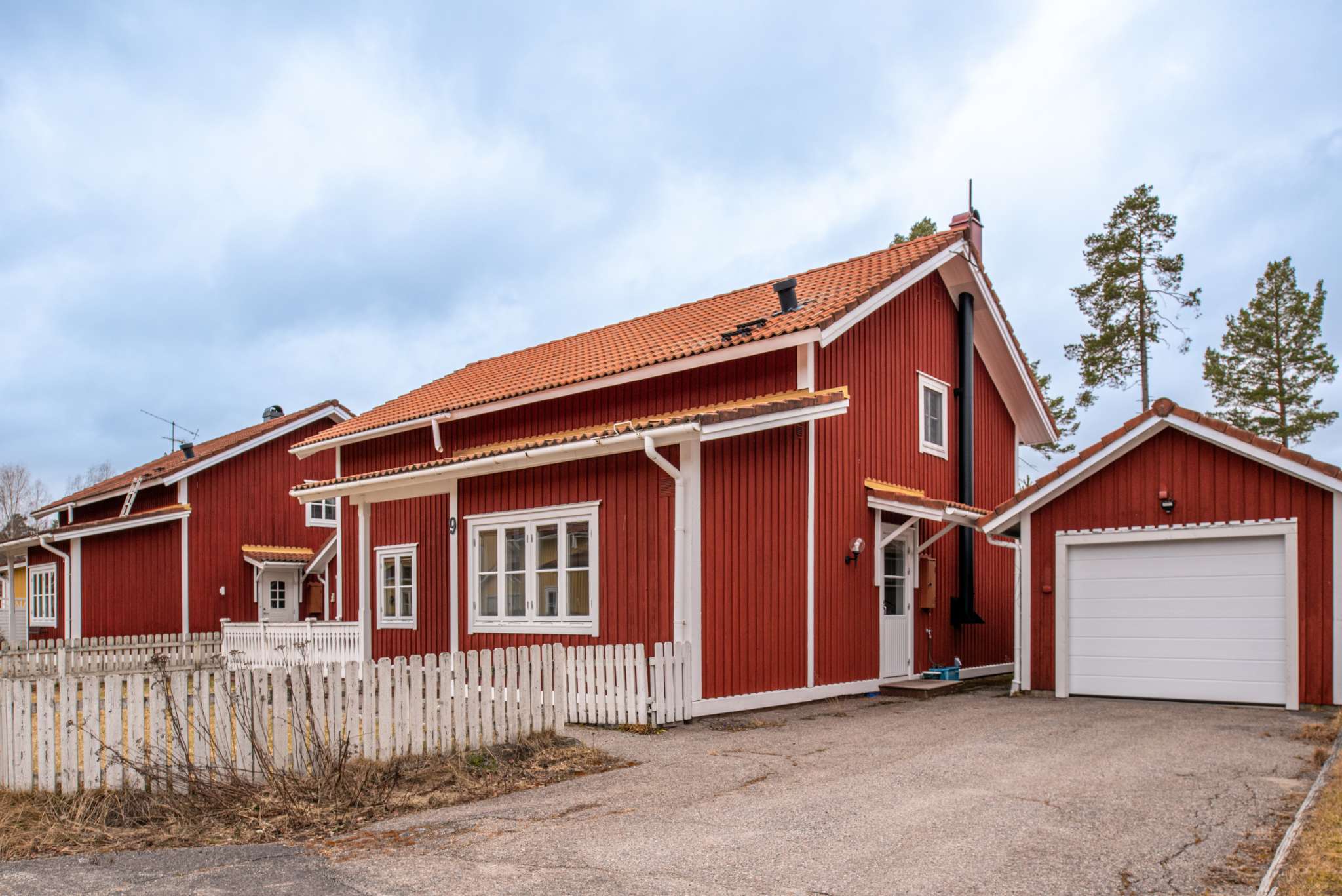 En nätt trädgård som löper runt huset. På framsidan finns en uteplats med altan i söderläge och på baksidan har du altan under tak. Där ser du ut i tallskogen och du kan dra på skidorna direkt vid huset om du ska åka längd i spåret som går strax utanför. Motionsspåret bjuder ju även på fina promenadvägar när det inte är snö.