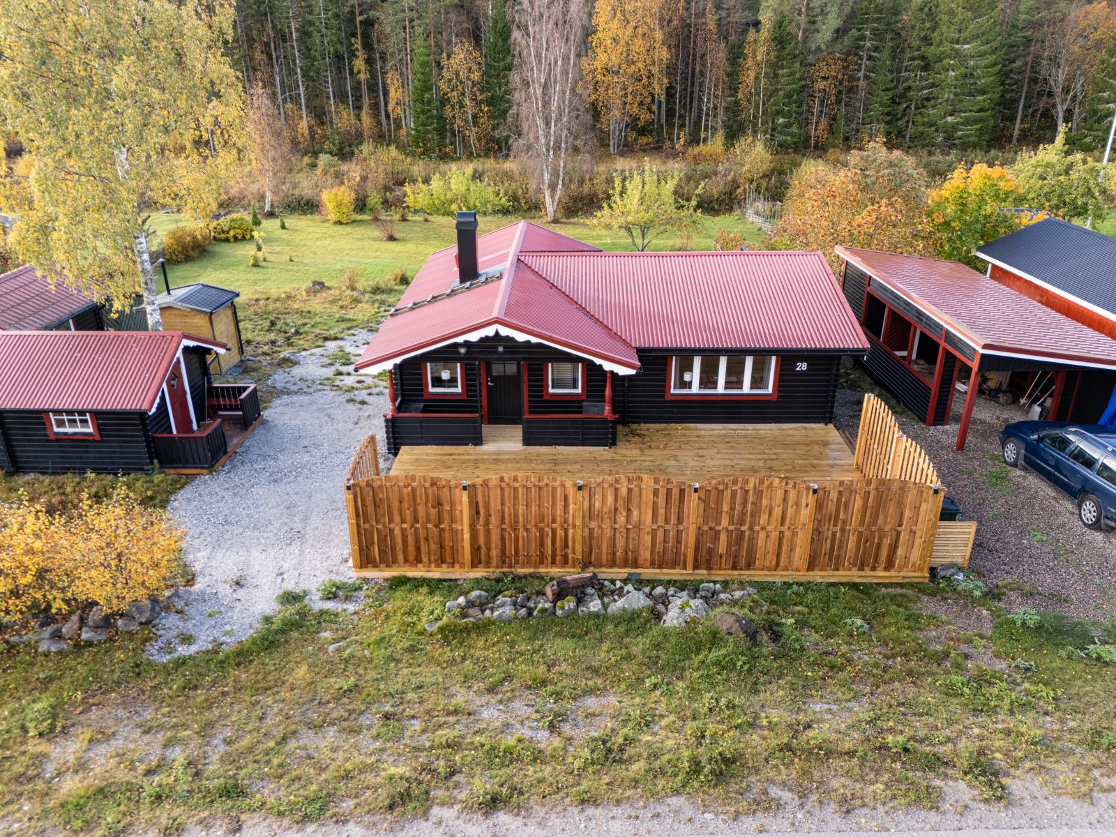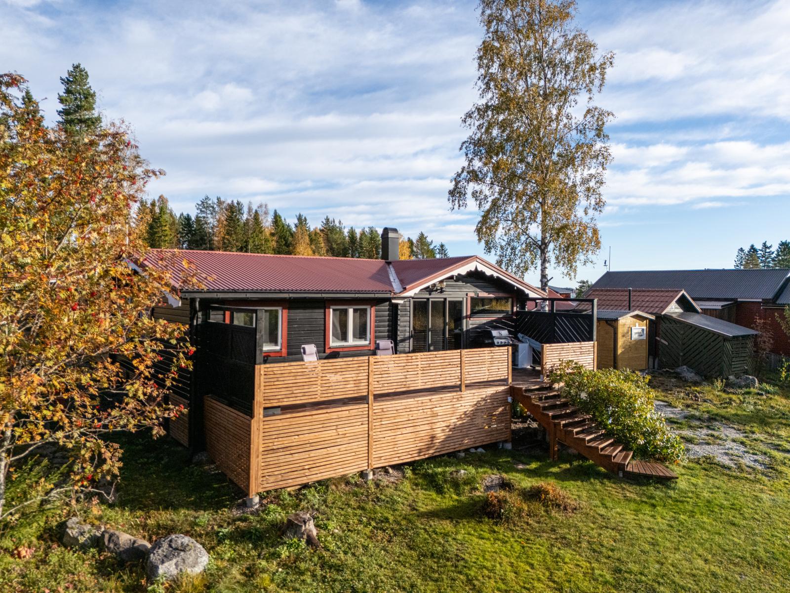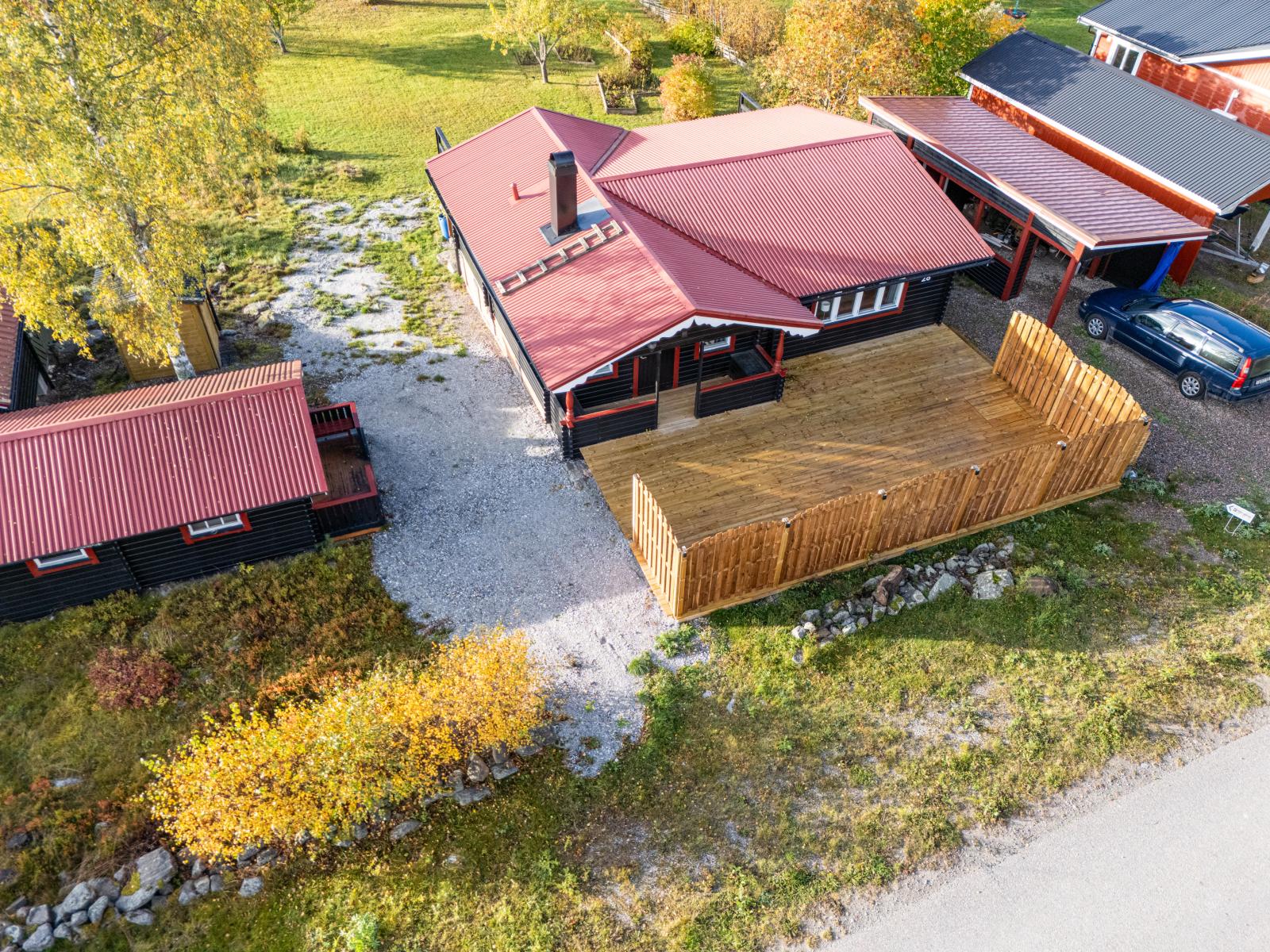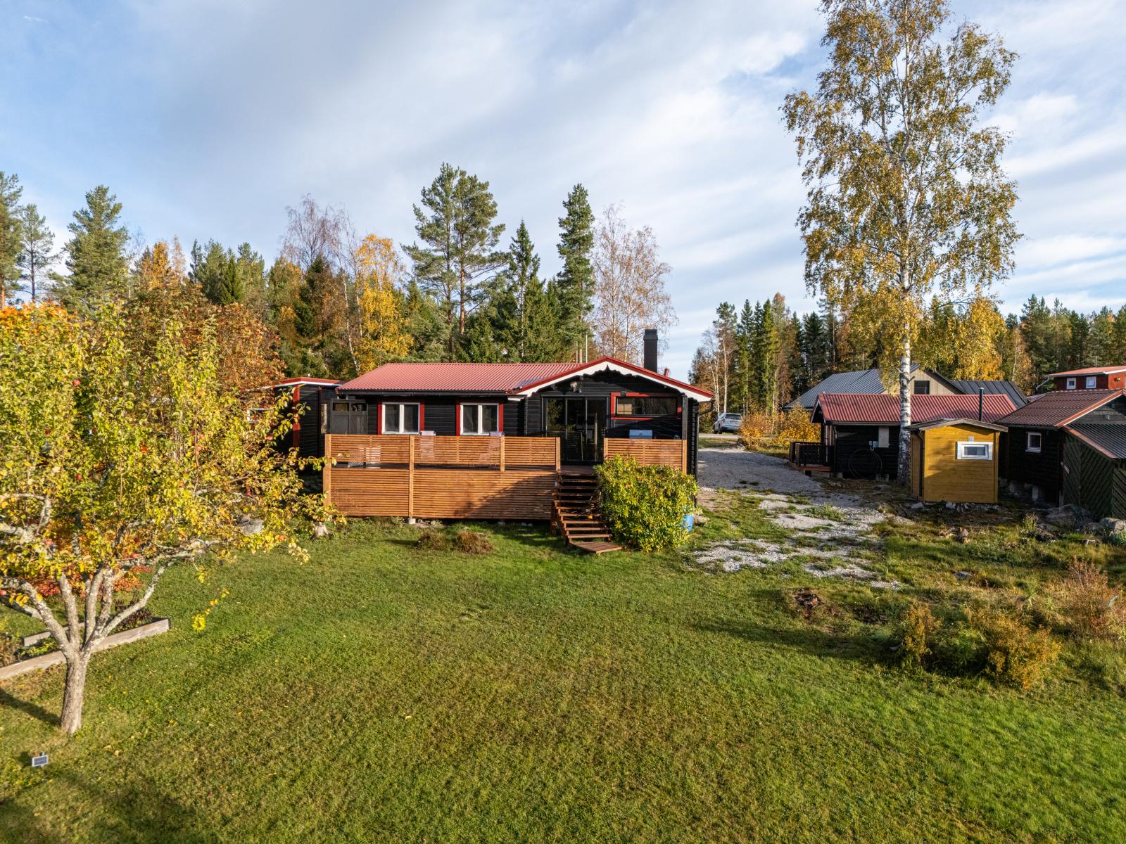 Fastigheten erbjuder trall både på fram- och baksida, en praktisk gäststuga på cirka 17kvm, samt en carport som skyddar bilen och en vinterbonad verkstad på cirka 8 kvm. Även en vinterbonad förrådsbod med matkällare och frostvakt finns att tillgå. Och som kronan på verket – här ingår även egen båtplats vid havet!