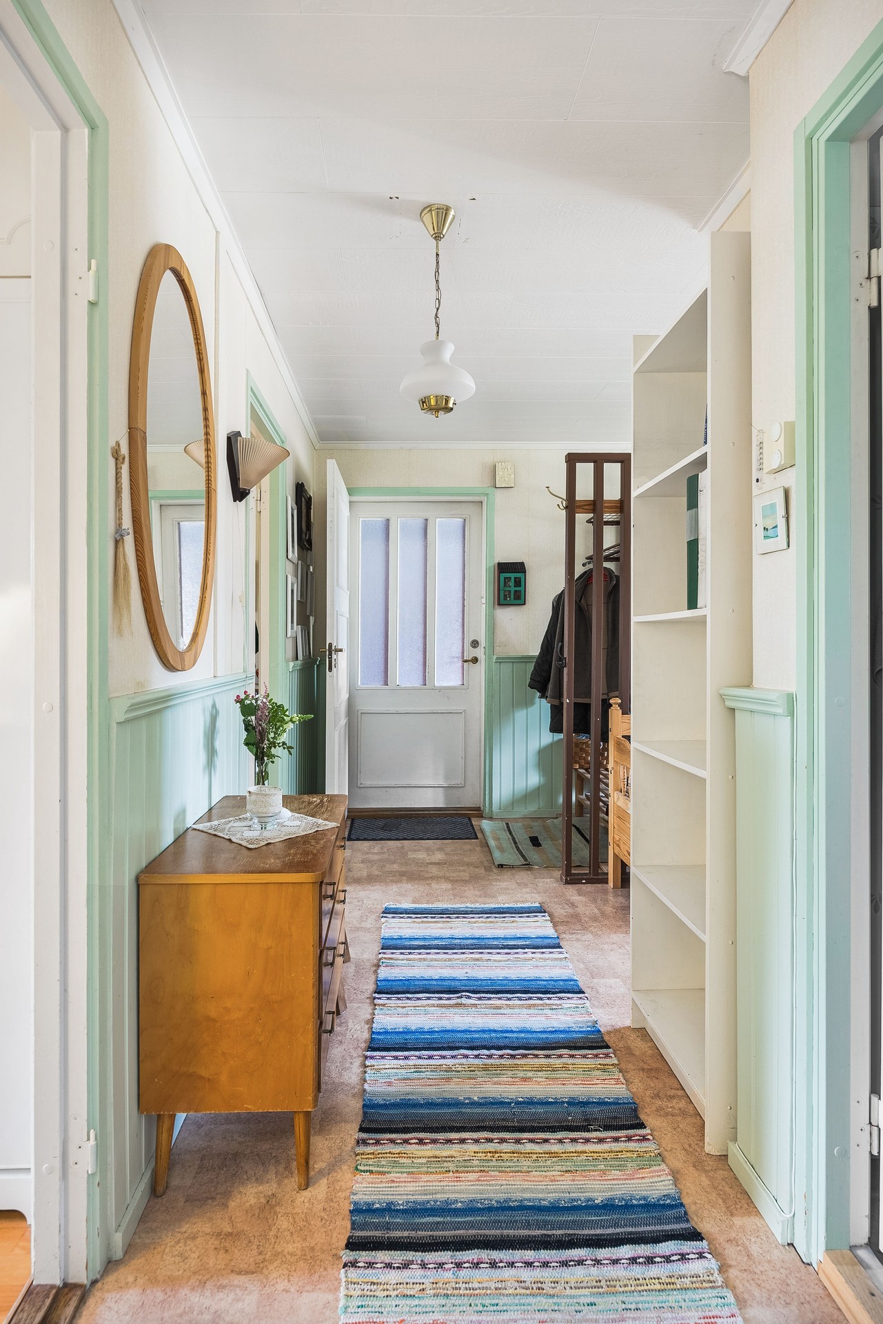Välkommen in i bostadens hall som leder dig vidare till entréplanets alla rum och trapp ned till källarplan. Här finns gott om plats för hallmöbler, klädförvaring och avhängningsmöjligheter.