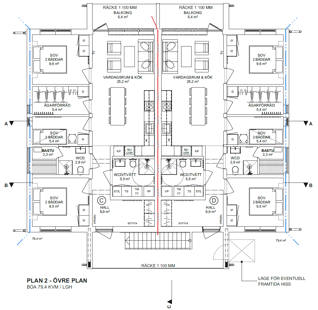 Den öppna och inbjudande sällskapsytan ligger i framkant av bostaden och blir en naturlig samlingsplats med ljus och rymd. Köket från Marbodal, utrustat med vitvaror från Vestfrost, håller en bra standard. Tvättmaskin, torktumlare, torkskåp och garderober ingår.