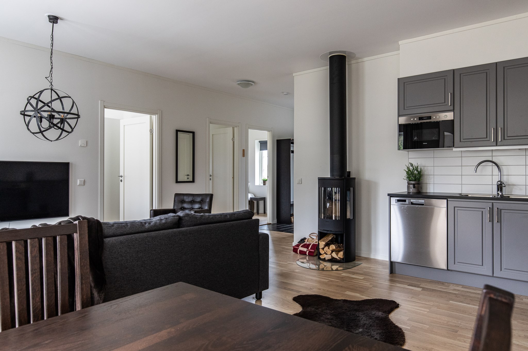 Välkommen till denna välplanerade och stilrena topp lägenhet. Här bor du högst upp i huset med totalt 72 kvm fördelat på tre rymliga sovrum, ett ljust och öppet allrum samt badrum, bastu och kamin. Lägenheten har en modern och genomtänkt planlösning som skapar en ljus och luftig känsla tack vare det fina ljusinsläppet.