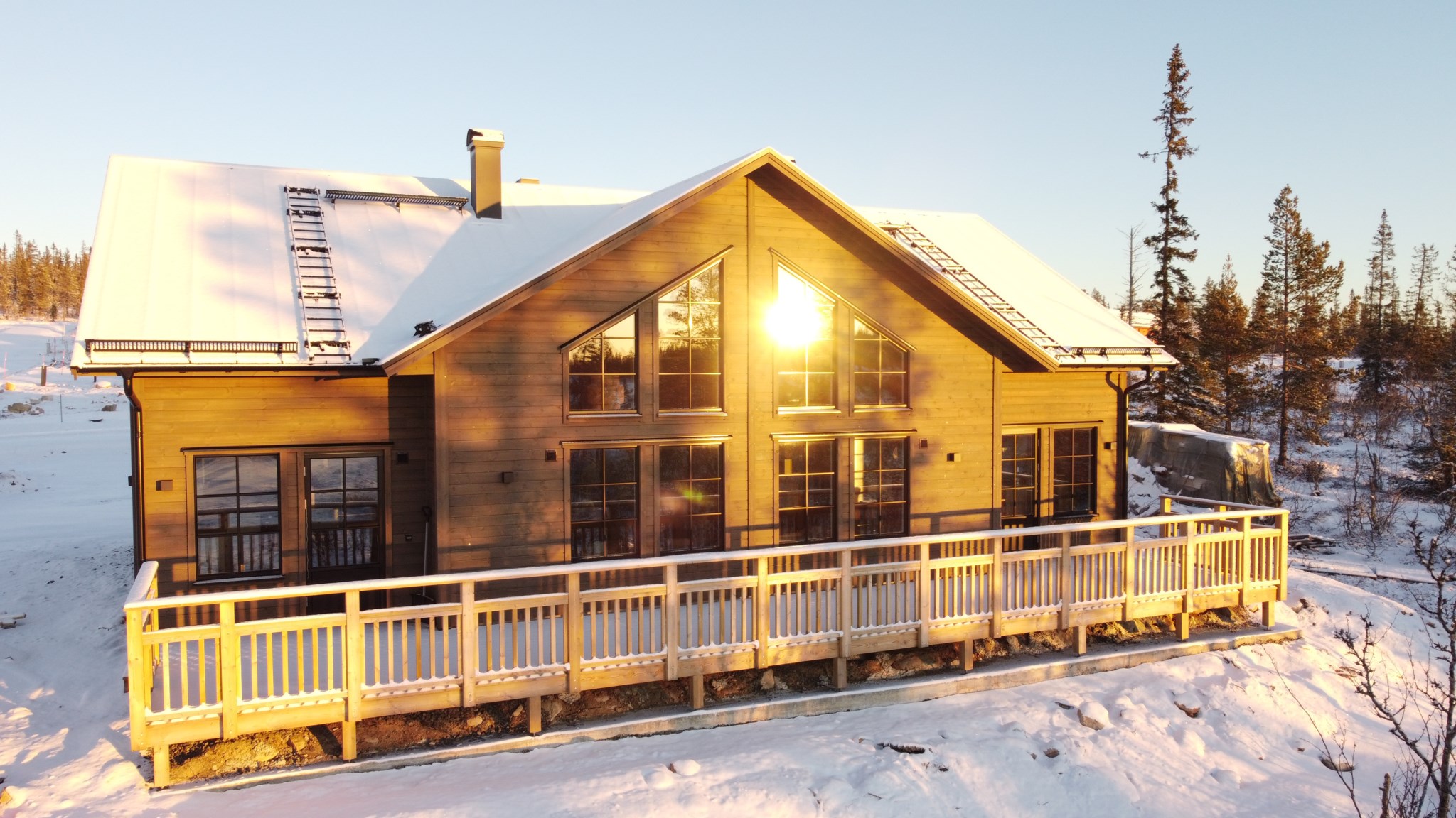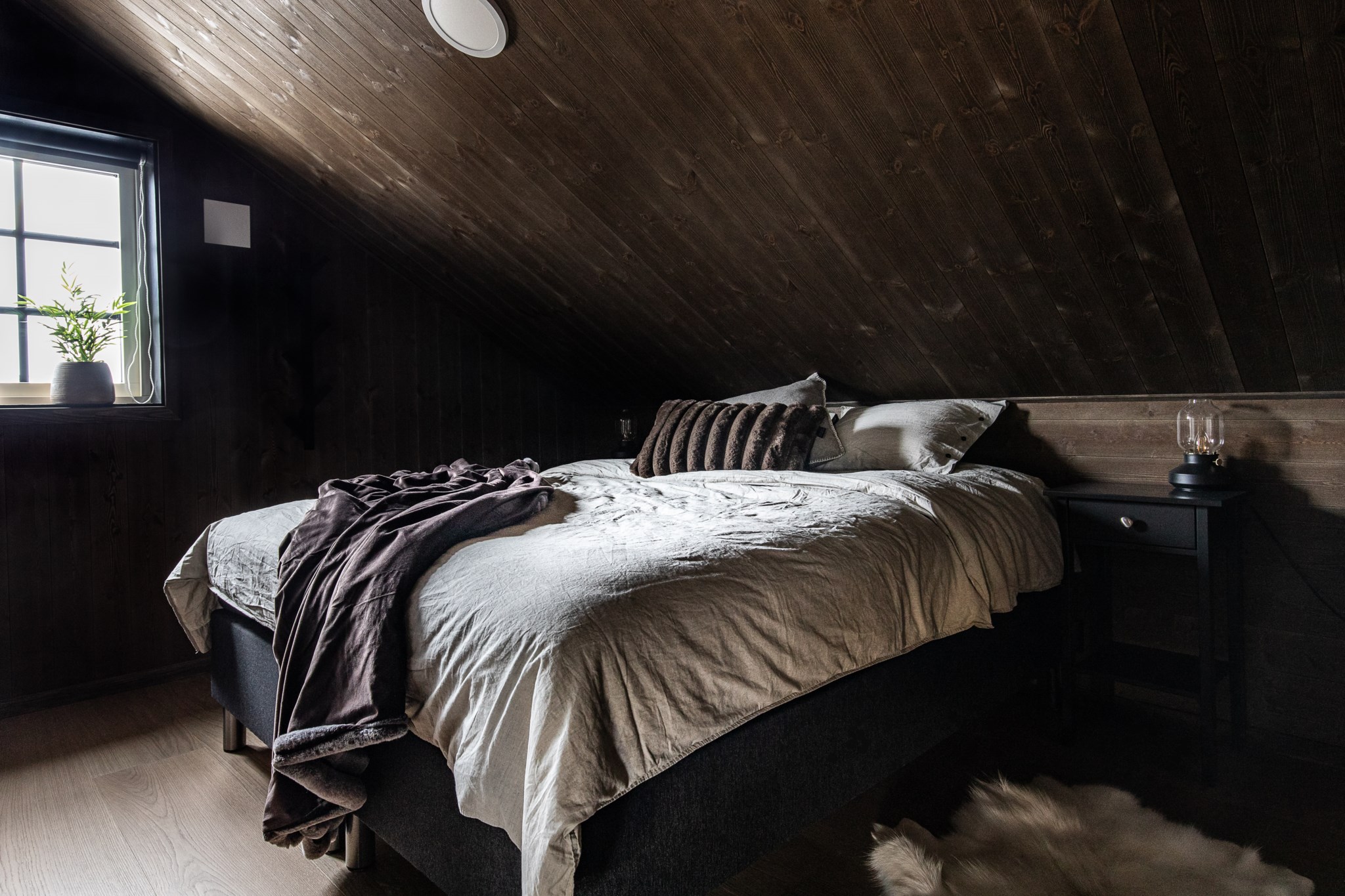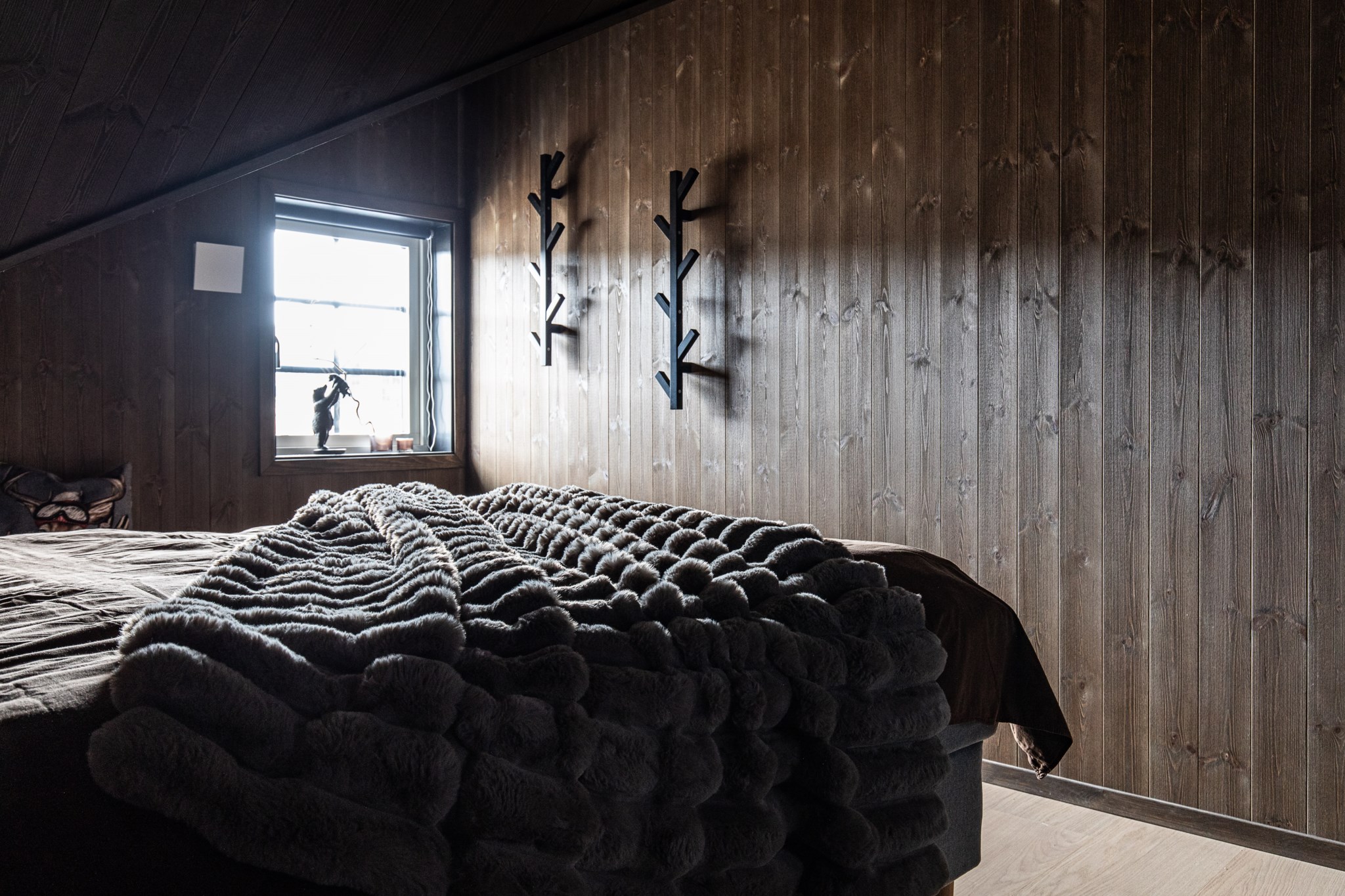 På Blåbärsstigen 1 i Storhogna hittar du detta fritidshus uppfört med två identiska lägenheter. Smakfullt inrett med genomgående mörk träpanel på väggar och tak samt fina trägolv och inredning i sobra färger. Varje lägenhet har fyra bra sovrum, social planlösning mellan kök, matplats och allrum. Stor uteplats med soligt läge.