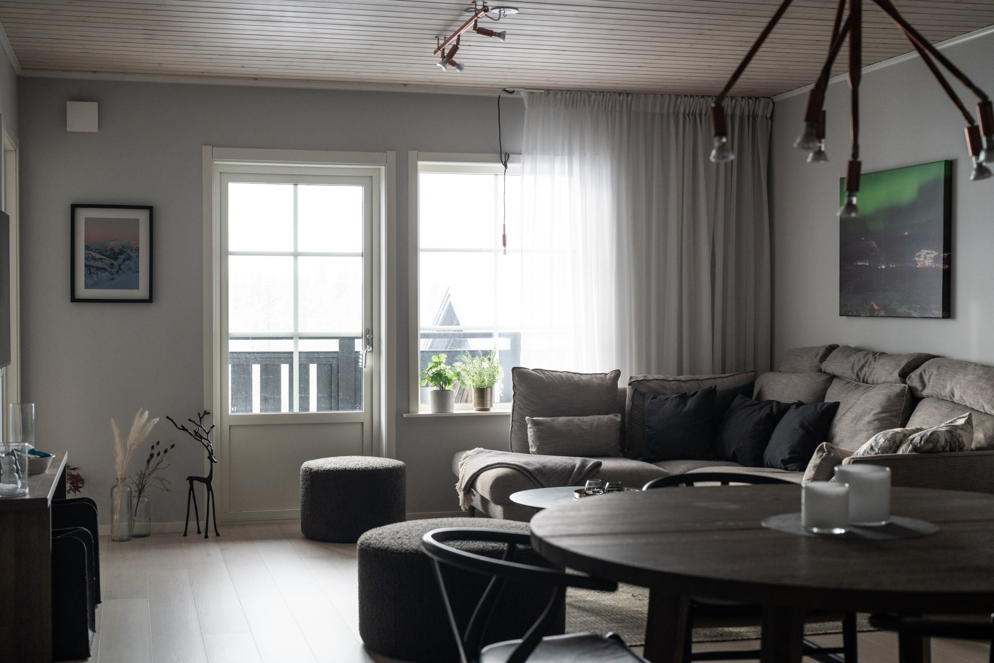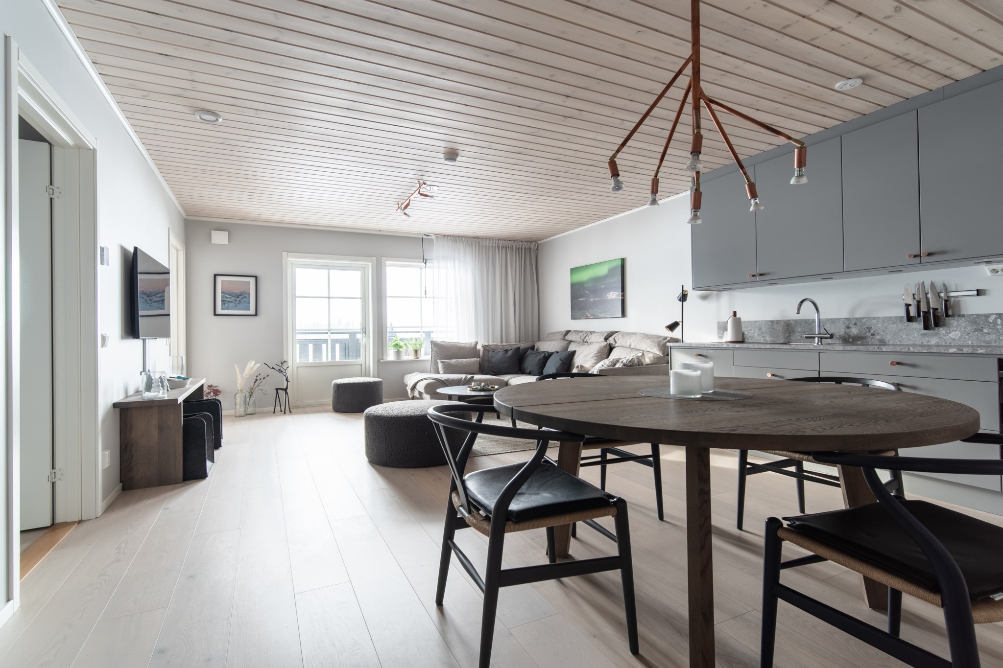 Lägenheten erbjuder en öppen och inbjudande planlösning där kök och vardagsrum möts i sociala ytor som skapar en naturlig samlingsplats för familj och vänner. Tre sovrum ger gott om utrymme för både familj och gäster. Det helkaklade badrummet med bastu bjuder in till avkopplande stunder efter en dag ute på fjället, och den separata gäst-wc:n bidrar till extra bekvämlighet i vardagen. Materialvalen är noggrant utvalda med bland annat kök och garderober från Ballingslöv, ett enstavigt parkettgolv samt en sober träpanel på väggen och platsbyggda hallmöbler och våningssängar som tillsammans skapar en varm och ombonat hem.