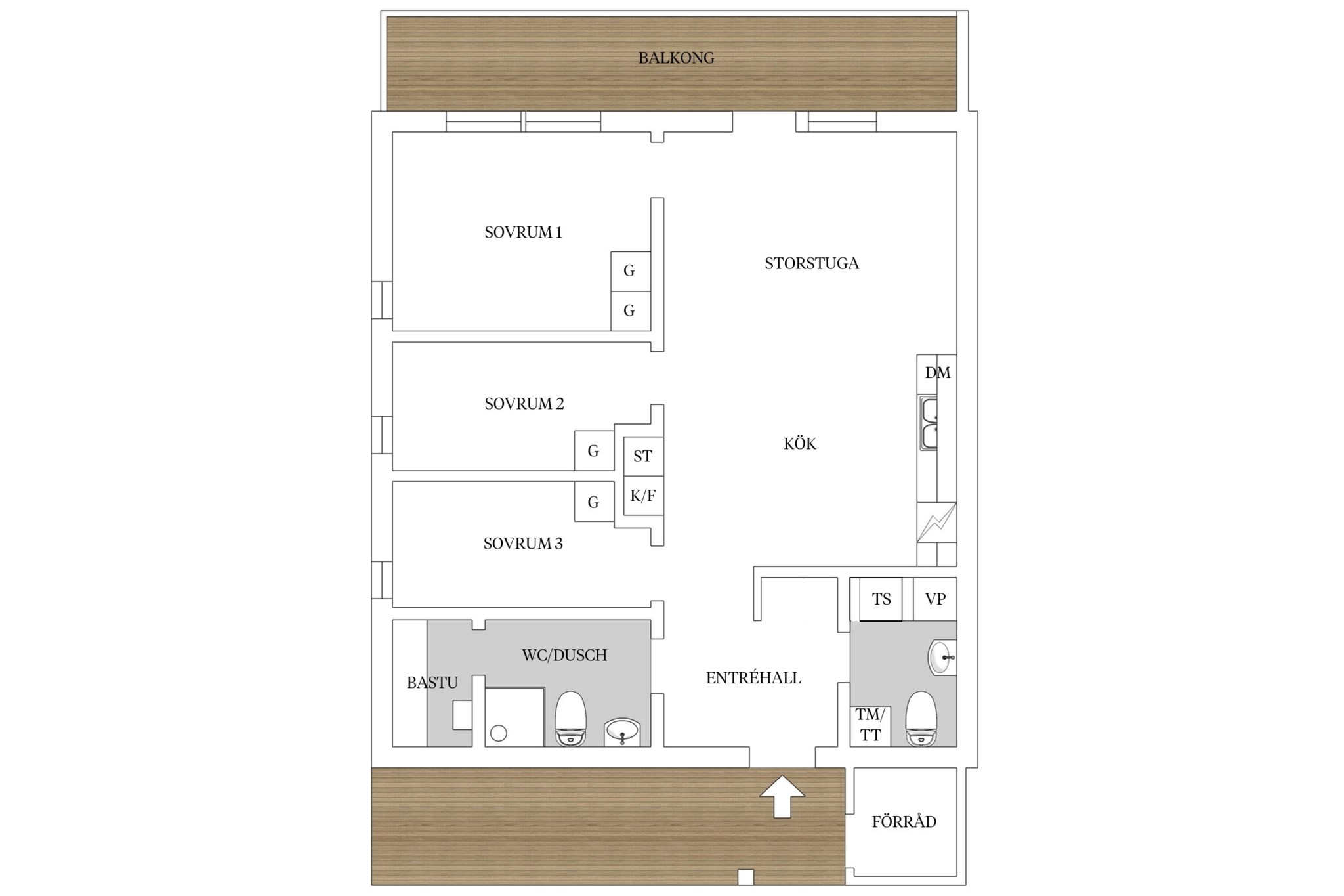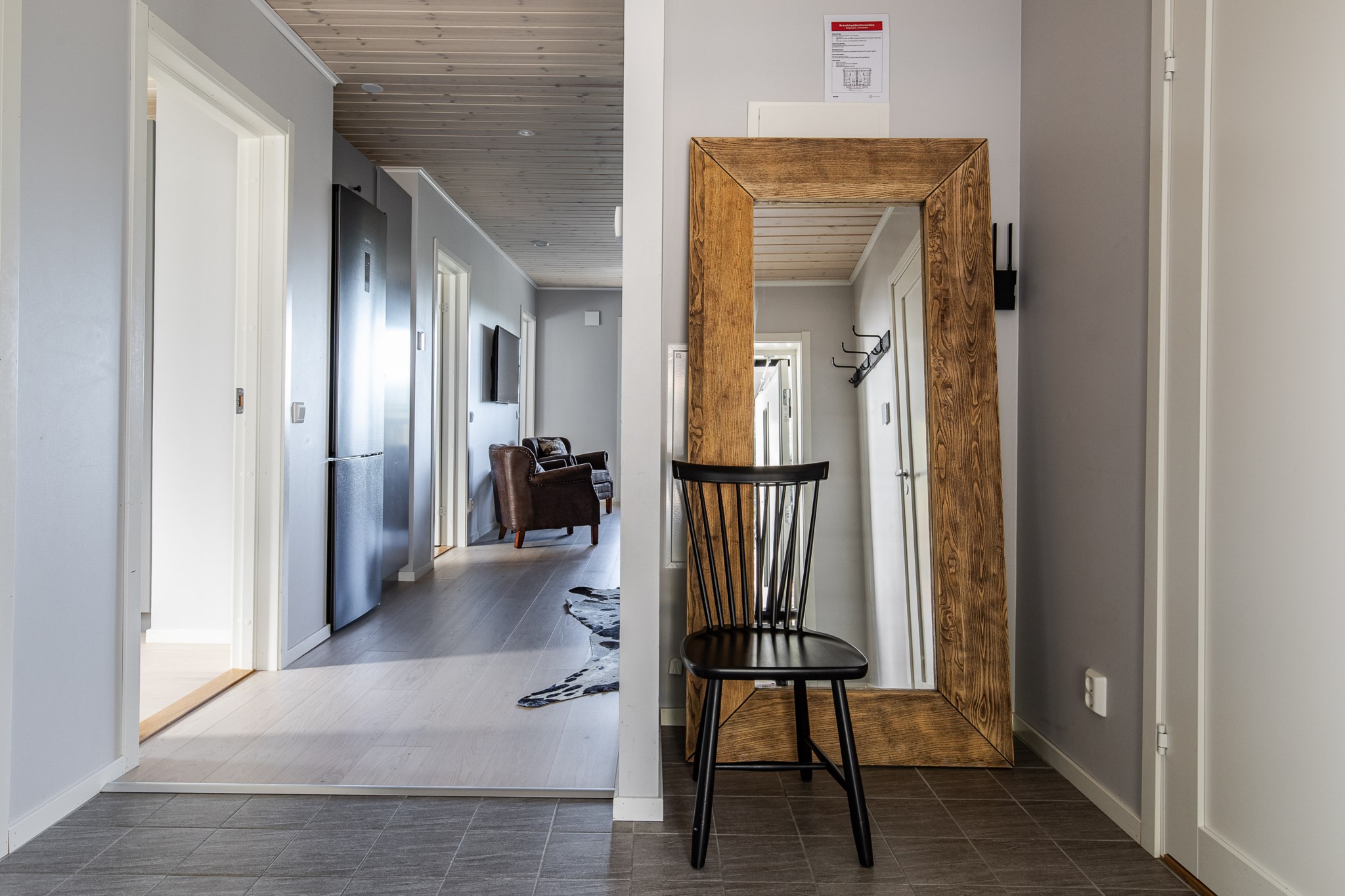 Lägenheten erbjuder en social och trivsam planlösning med öppna ytor mellan kök och vardagsrum. Tre sovrum, helkaklat badrum med bastu samt gäst-wc vilket ger gott om plats för familj eller gäster. Balkong i sydväst-läge med utsikt över Klockarfjället och skidsystemet. Kvalitativa materialval med bland annat kök och garderober från Ballingslöv samt enstavigt parkettgolv samsas med sobra färgtoner och träpanel vilket skapar en ombonad känsla.