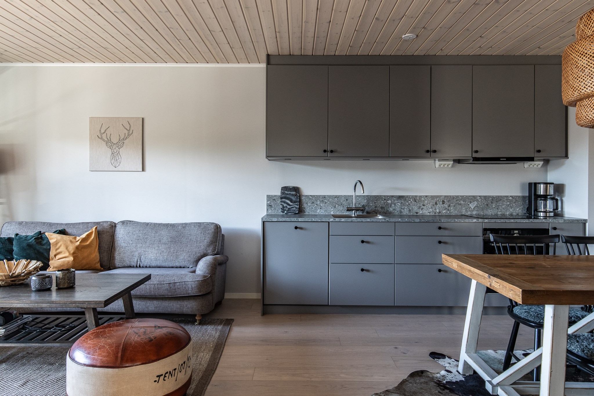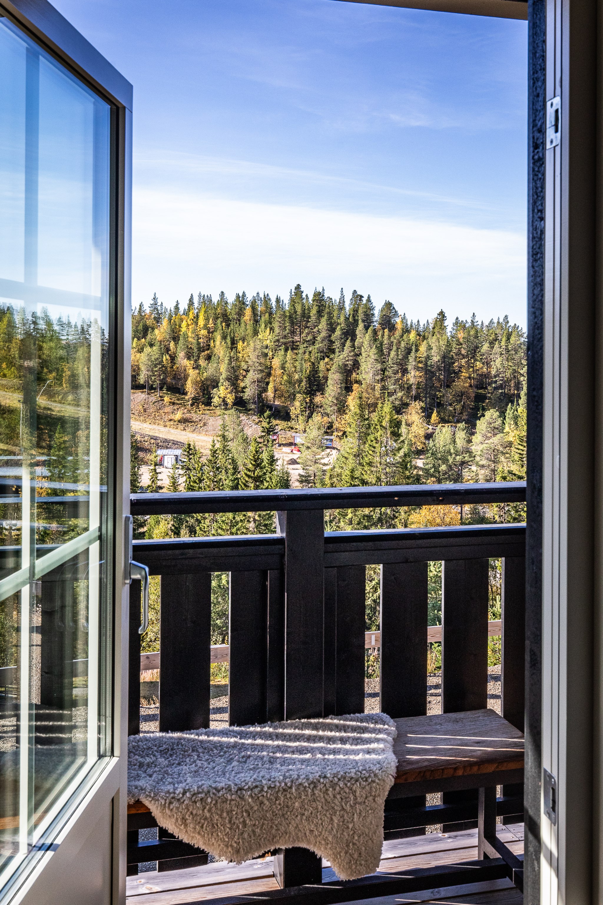 Lägenhet med ski-in/ski-out, balkong i sydväst och vyer över Hovdetoppen