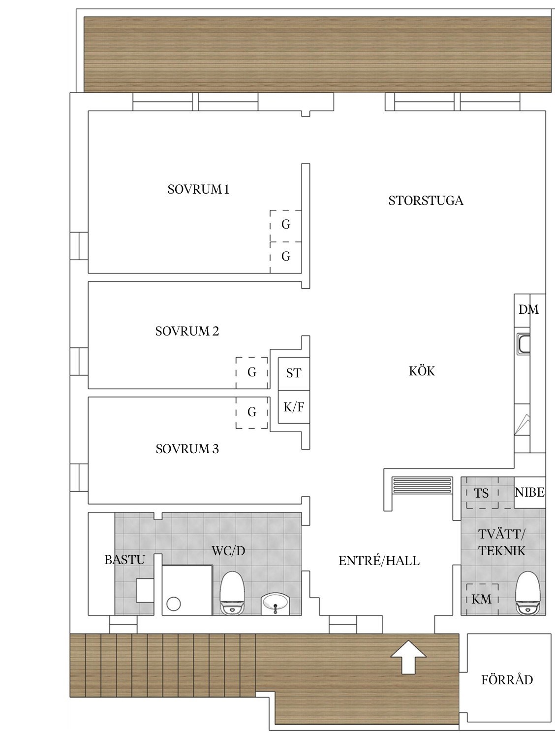 Varje lägenhet har ett tillhörande skidförråd om cirka 2-3 kvm – praktiskt och bekvämt för både skidutrustning och friluftsprylar.
