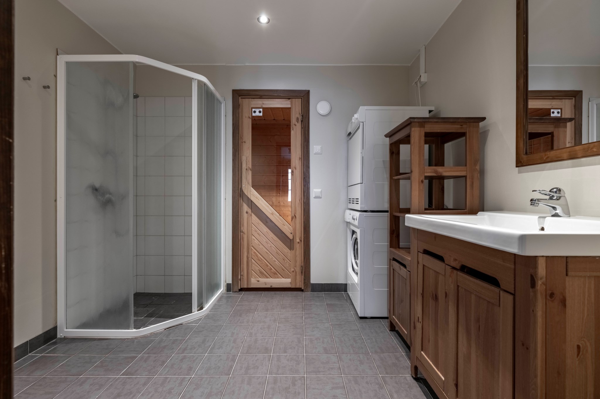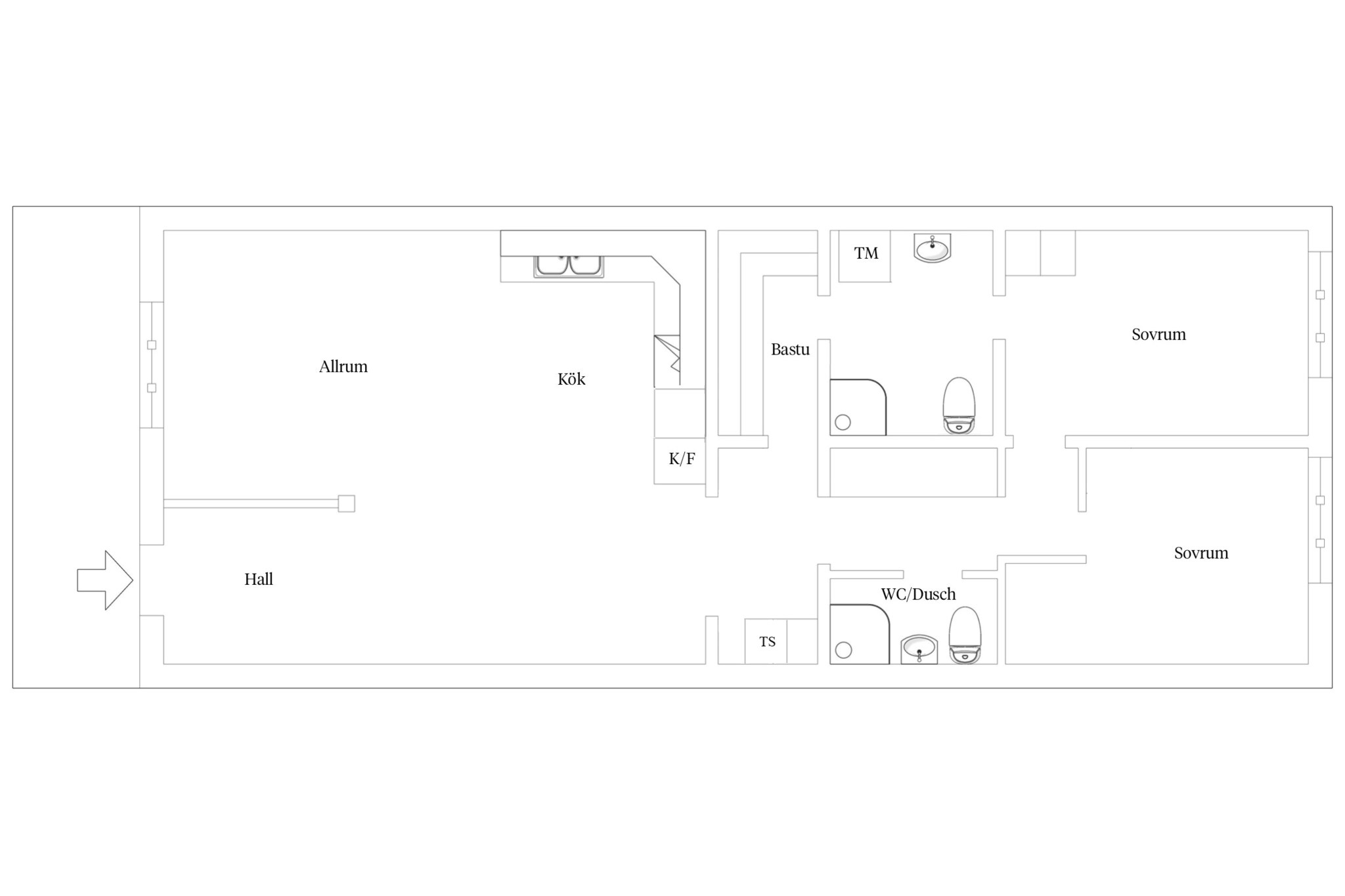 87 kvm fördelat på två sovrum, rymligt allrum med matplats, soffhörna och kök. Två badrum varav ett med bastu. Obelånad förening.